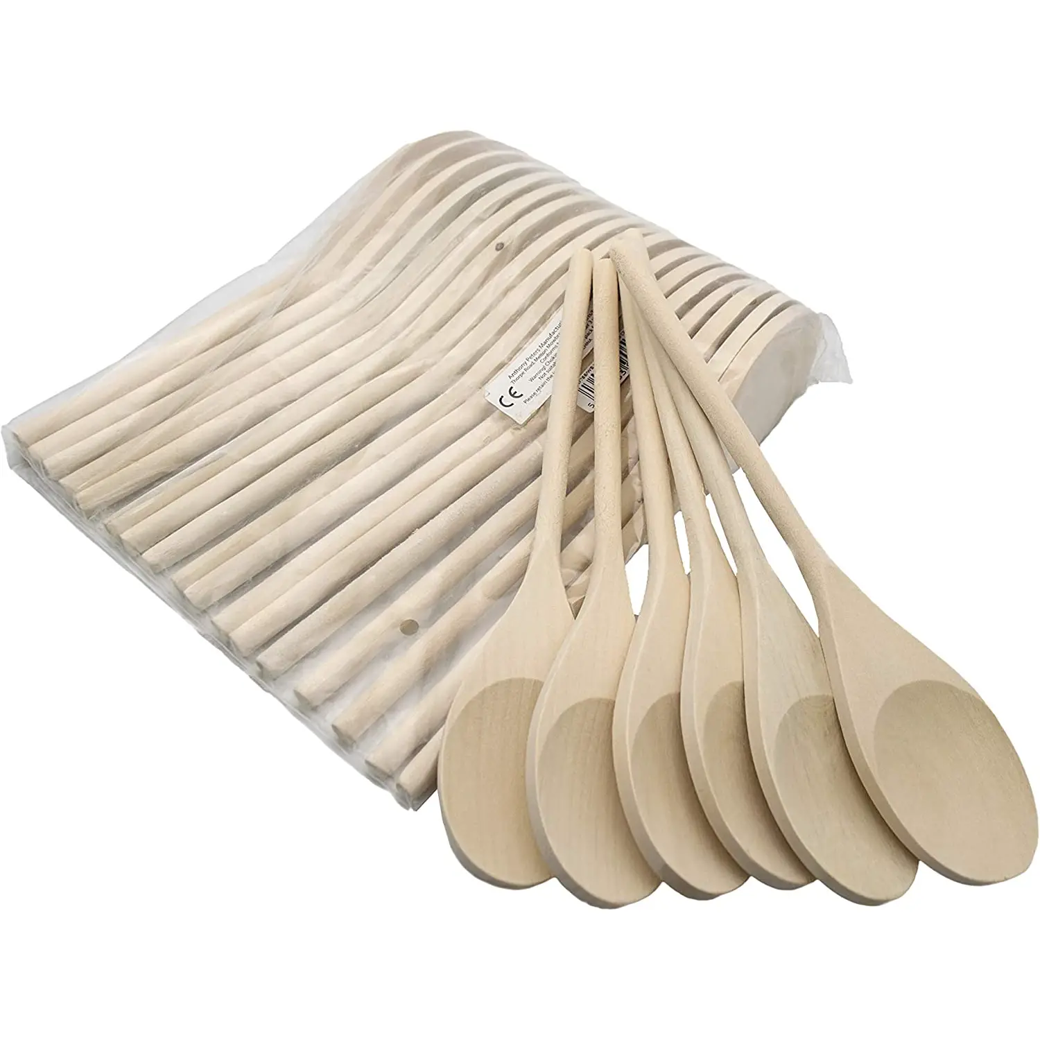 Quantità Generosa: Il set include 24 cucchiai in legno naturale e levigato.