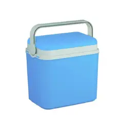 Portable passive cooler box, capacity 10 liters. 30x19h28 cm size. Capacity: 6 0.5-liter bottles. Ideal for vacations, camping, fishing. Temperature delta up to 11 hours equipped with ergonomic handle that ensures the hermetic closure of the lid made of expanded polypropylene color gray/green