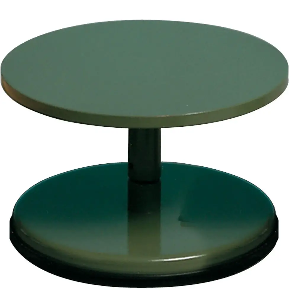 Revolving lathe for decorating ceramic artifacts. Made of painted steel, with molded top rotating on ball.