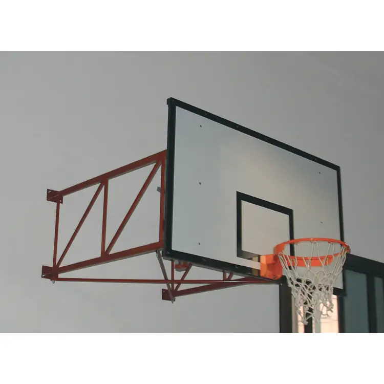 Impianto pallacanestro a parete fisso con mensole in acciaio verniciato, garantisce resistenza e longevità per ogni partita.