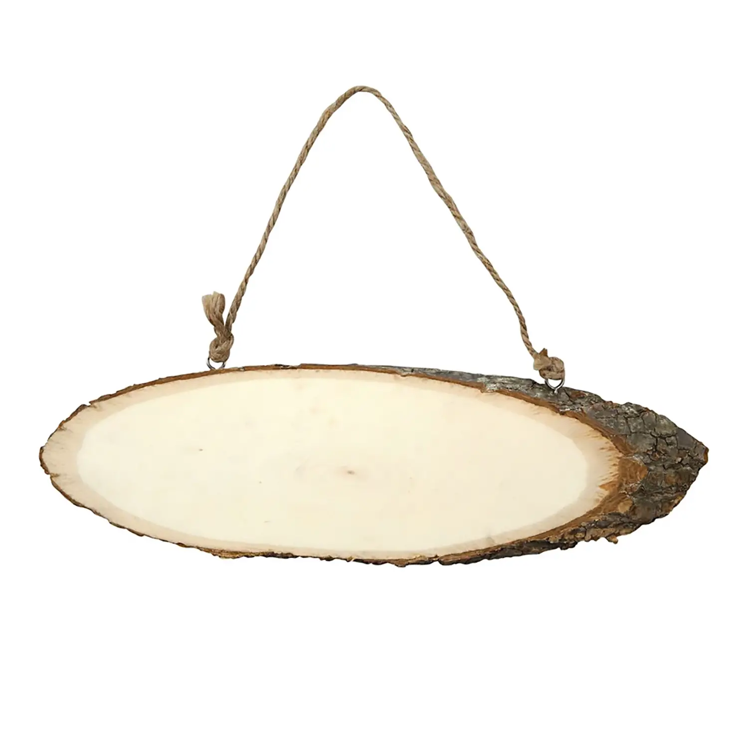 Questa insegna realizzata con una fetta di vero tronco rappresenta un modo originale e naturale per esprimere la tua creatività. Grazie alla sua corda, può essere appesa facilmente, e la superficie in legno può essere personalizzata con colori acrilici, pennarelli a vernice, glitter, brillantini, o anche incisa con un pirografo.