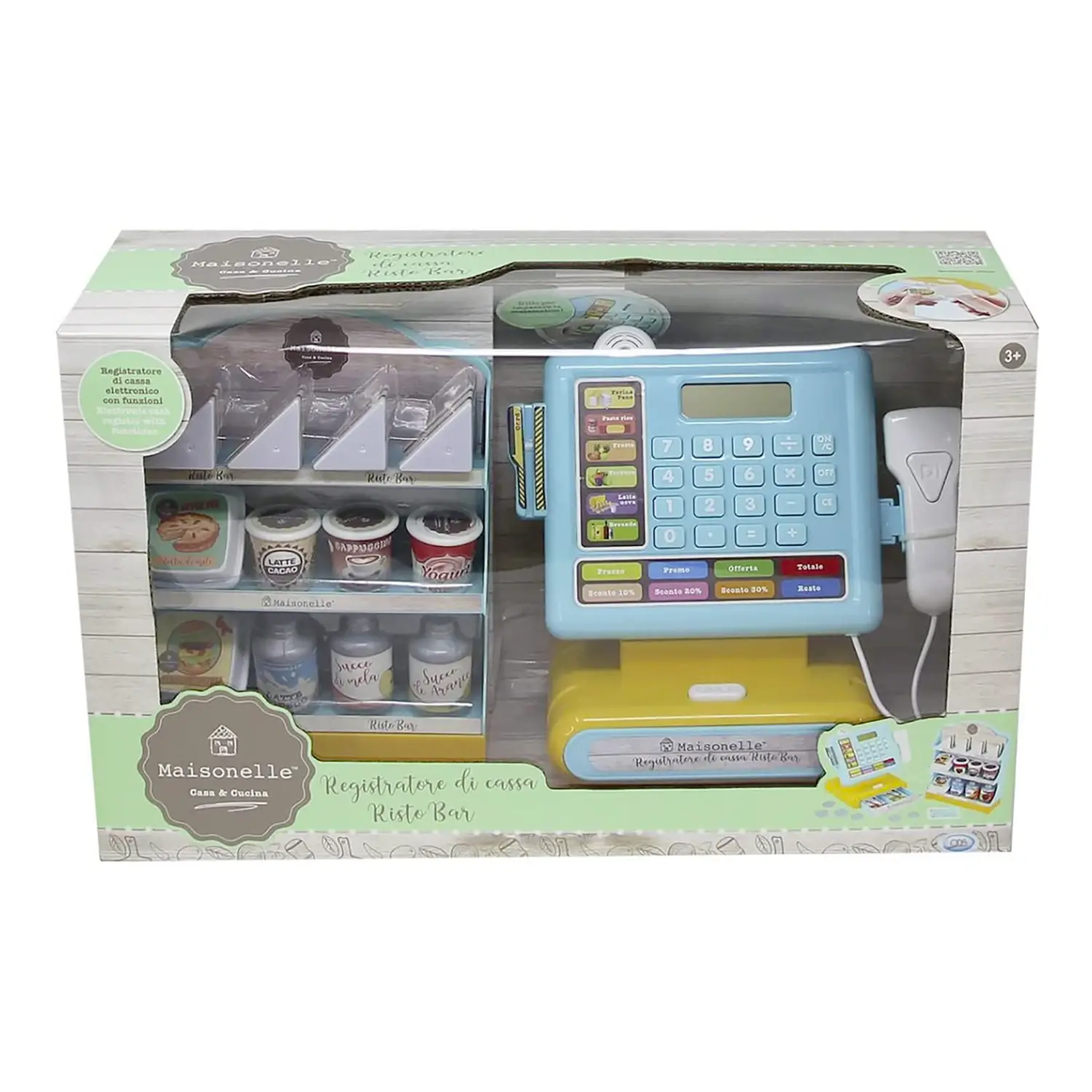 The Maisonelle Cash Register Risto Bar also includes a risto bar banquet with a variety of food items. Children can imagine preparing delicious meals, serving customers and managing the sales ledger, all in an engaging and creative play environment.