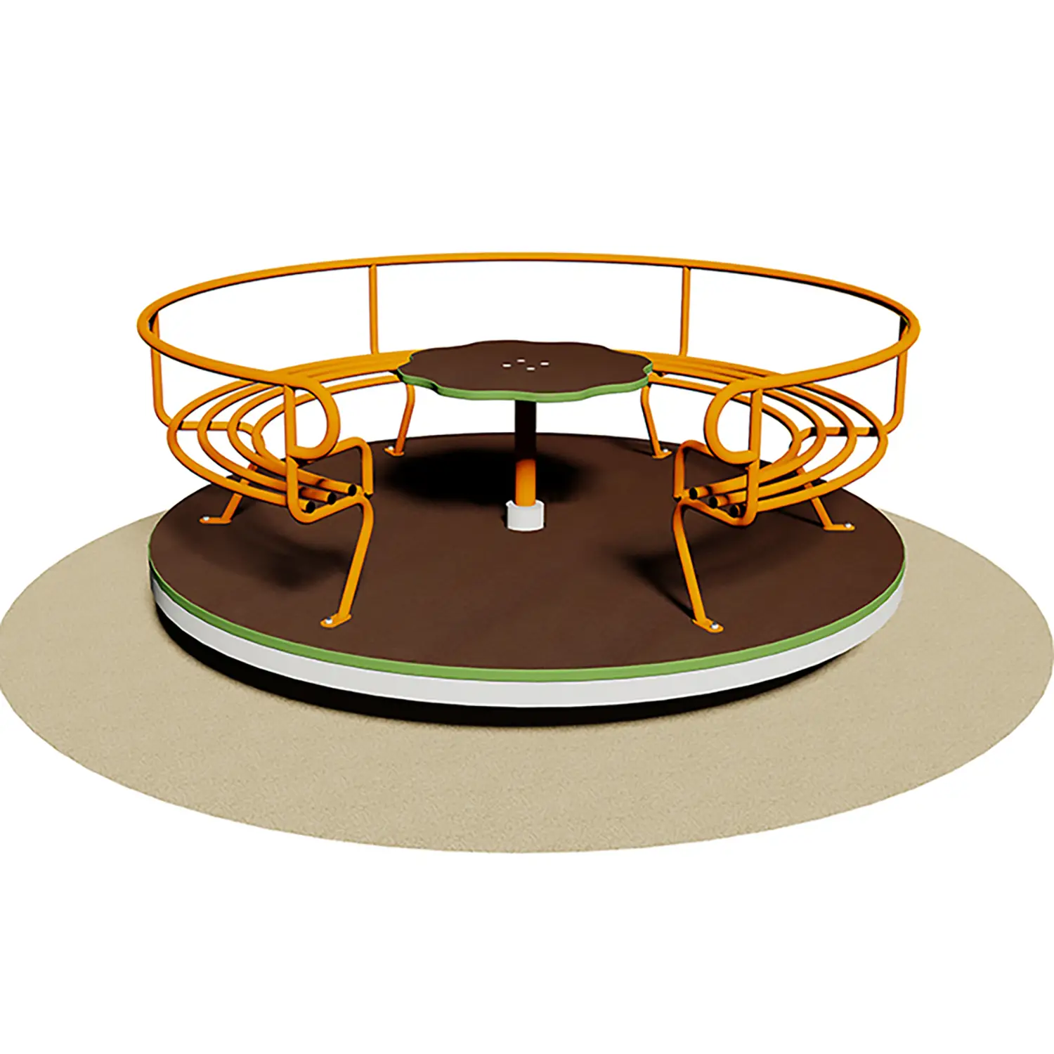 Giostra certificata in conformità delle Norme Europee EN 1176 dall’Istituto Tedesco TÜV - SÜD per l’installazione e l’utilizzo in parchi pubblici.
