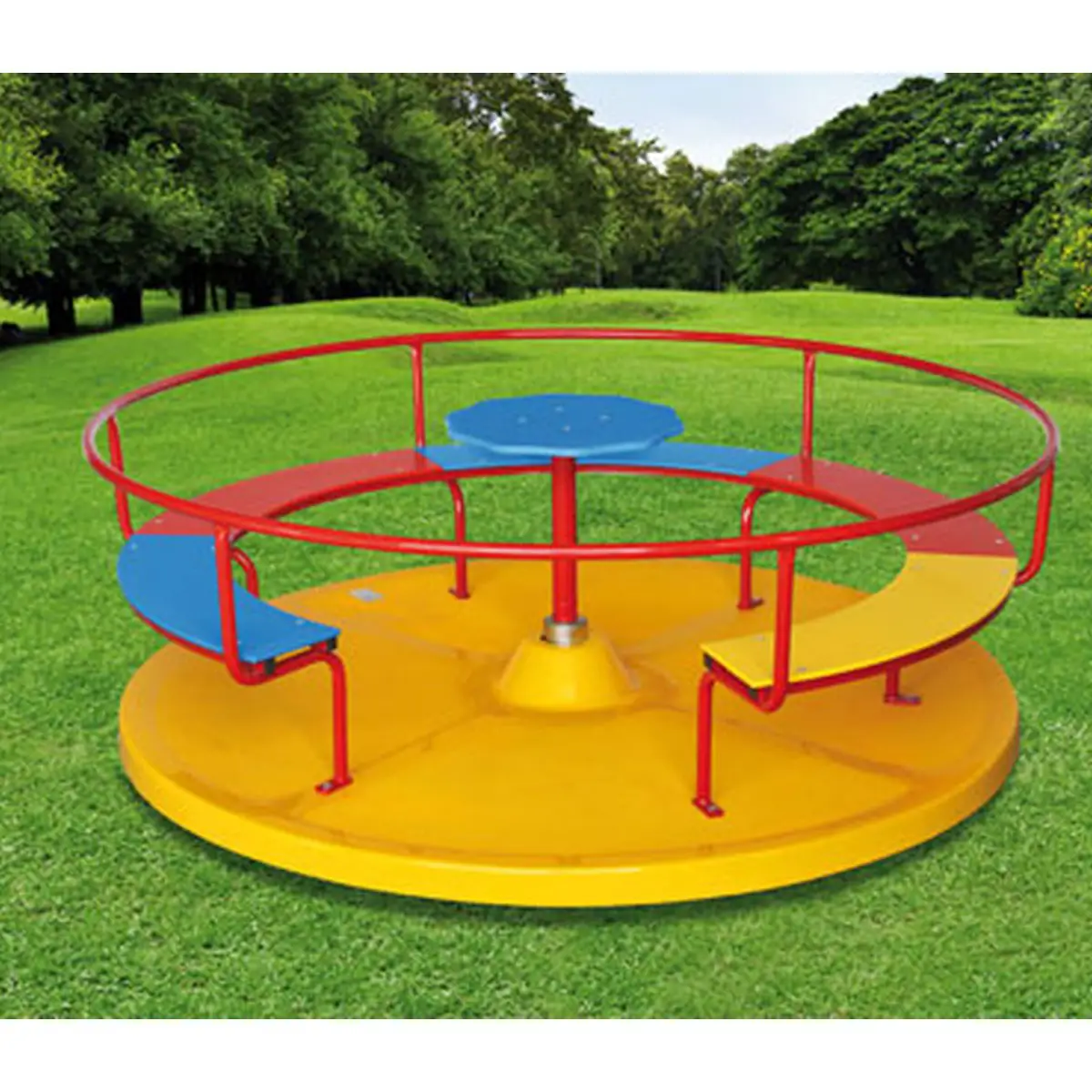 La Maxi Giostra Margherita 18 Posti è un gioco da esterno sicuro e divertente, certificato EN 1176 per uso pubblico. Perfetta per parchi giochi, scuole, aree ricreative e giardini, questa giostra offre un’esperienza di gioco condivisa per bambini dai 3 ai 12 anni.