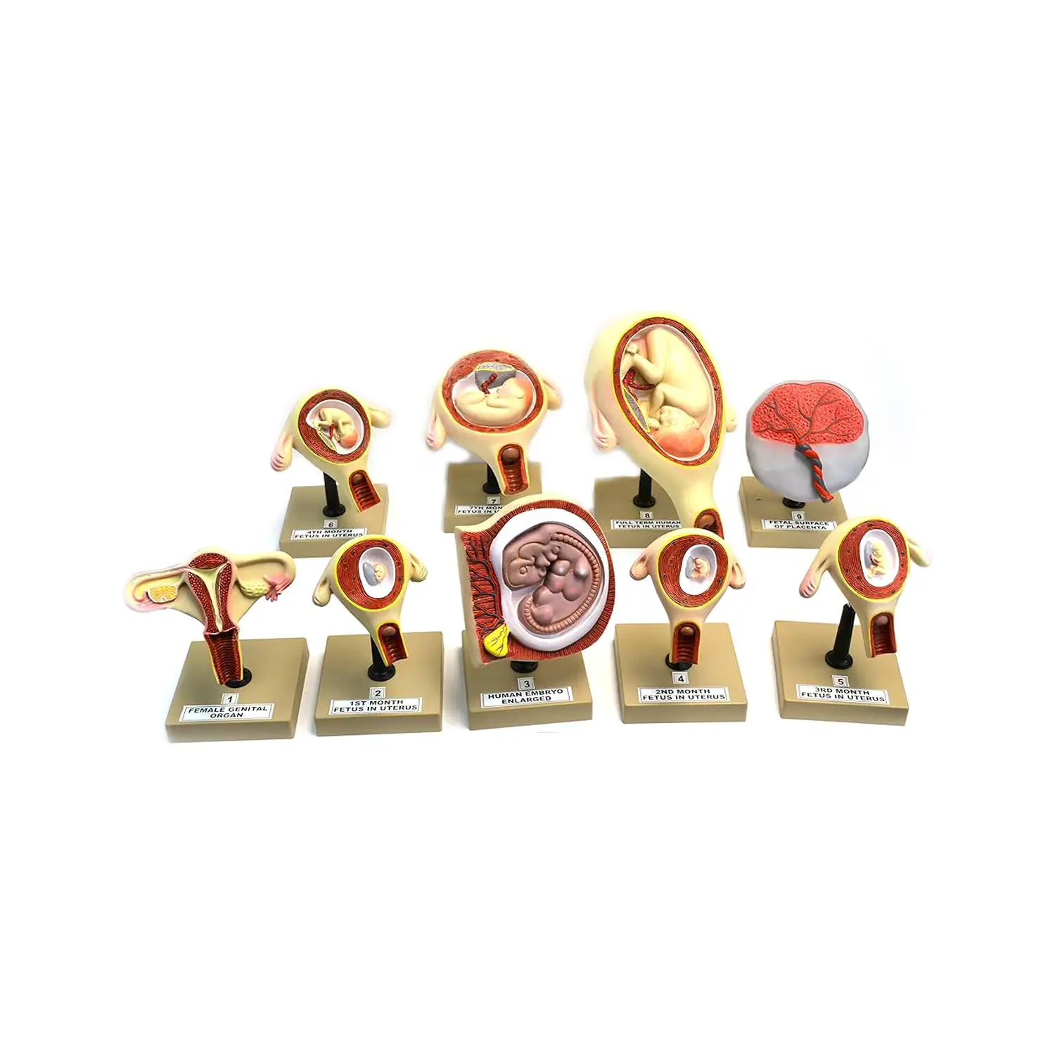 - ✅ Set educativo con 9 modelli che rappresentano lo sviluppo embrionale e fetale dalla 6ª settimana al 9º mese.