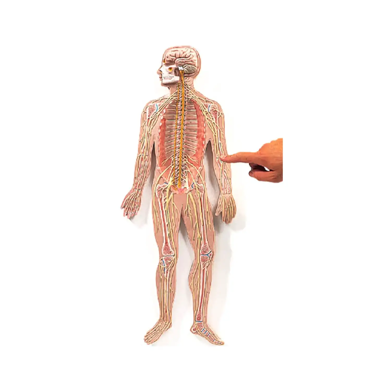 Mostra sistema nervoso centrale e periferico in rilievo, permettendo di osservare cervello, midollo spinale e principali nervi con grande chiarezza.