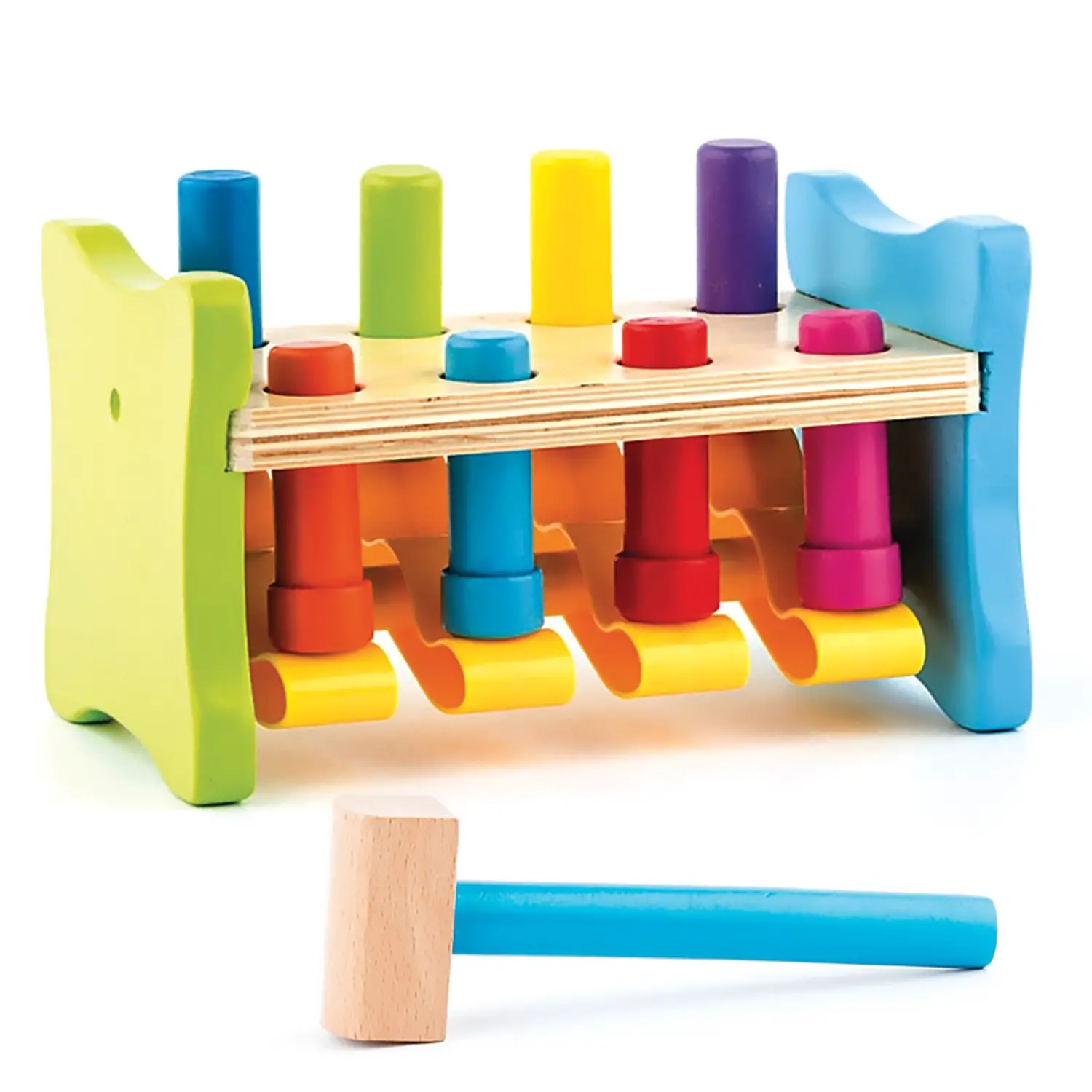With "Hit Rainbow Cylinders," children will be tasked with hitting each cylinder with the gavel, watching contentedly as a second cylinder pops out of the top opening. This engaging action makes for interesting and challenging play.