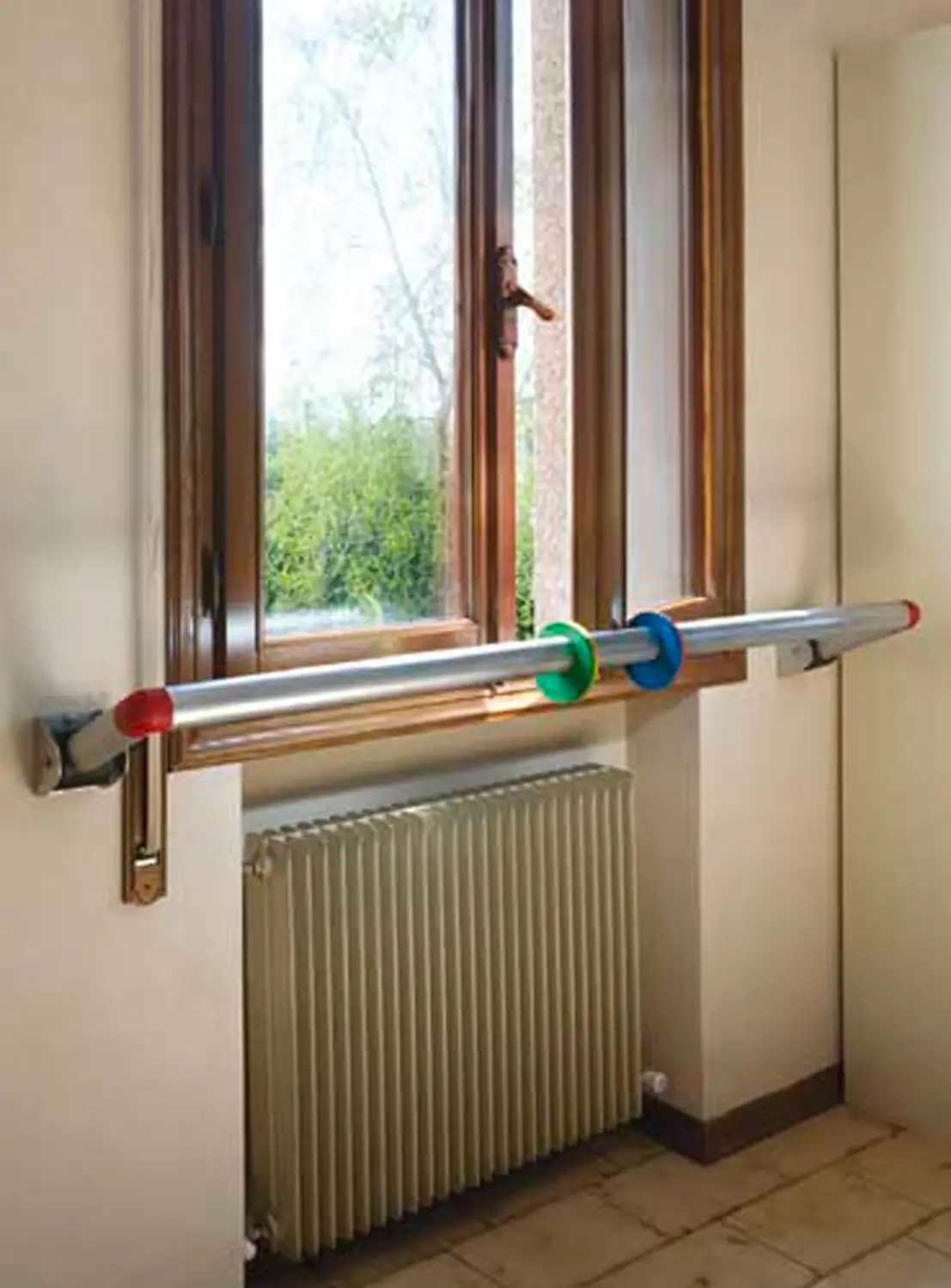 Barra ribaltabile di facile manovrabilità, protettiva per bordi e spigoli vivi delle ante delle finestre, realizzata in alluminio anodizzato.I dischi in EVA permettono di bloccare le ante aperte in modo stabile.Posa in opera mediante tasselli ad espansione.Il costo completo della struttura si calcola tenendo presente un COSTO FISSO rappresentato dalla coppia di protezioni A cod.9295 e un COSTO VARIABILE dato dalla barra cod.9295 con prezzo al metro lineare.
