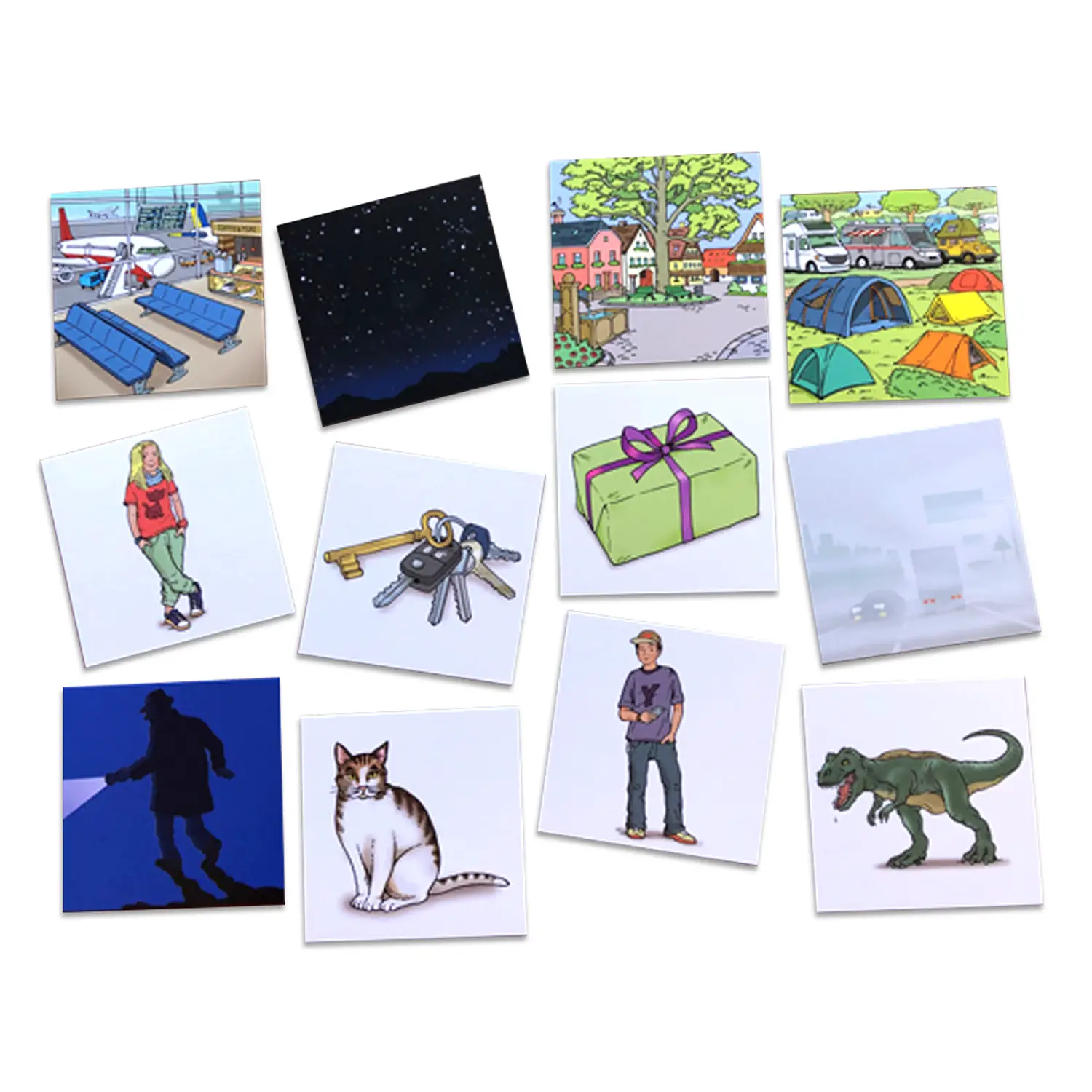 - ✅ Include 18 ambientazioni, 7 carte tempo atmosferico, 17 persone, 8 animali, 18 oggetti e 7 veicoli per infinite combinazioni narrative.