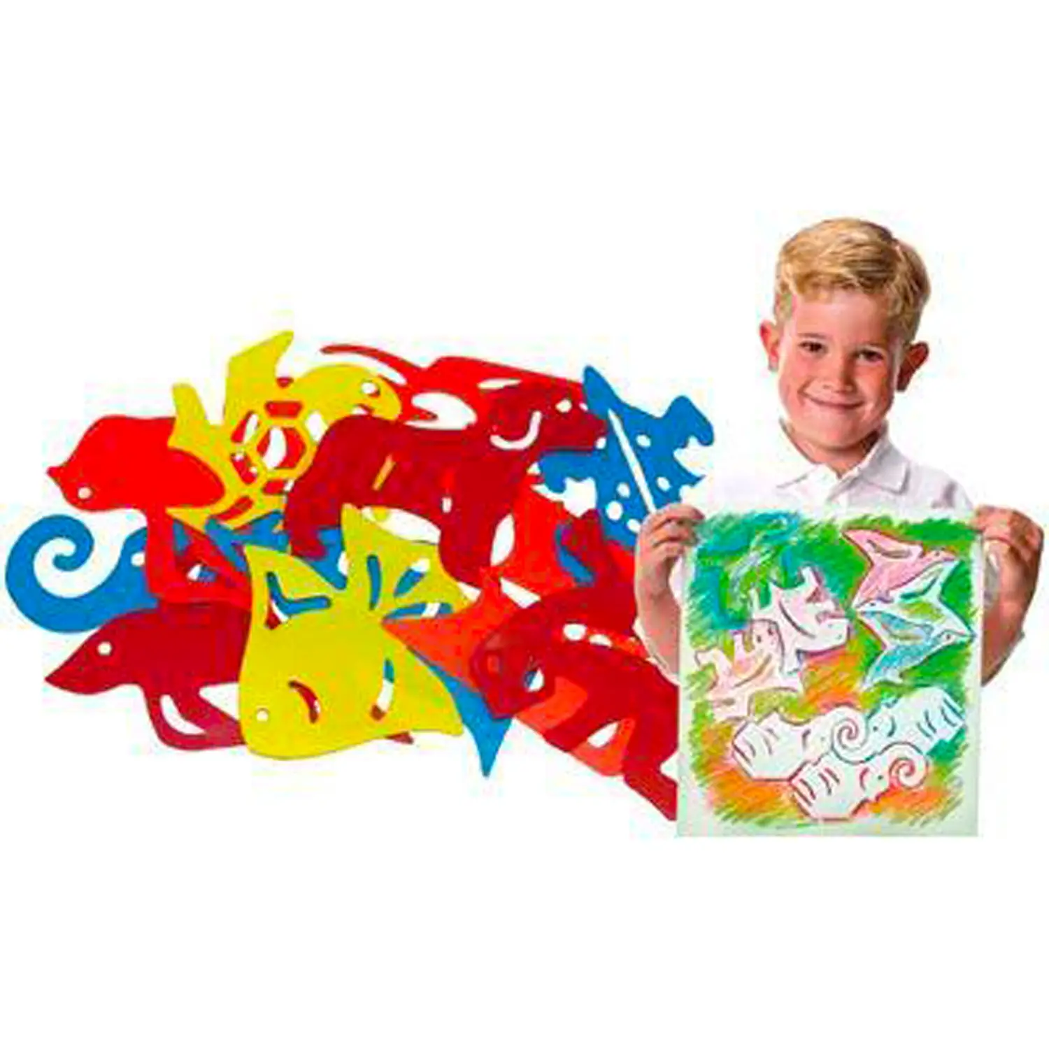 - Set Creativo da 12 Stencil: Include 12 soggetti assortiti (come animali e forme astratte), per infinite combinazioni artistiche.