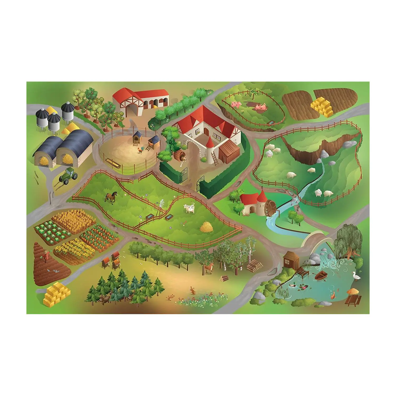 - Raffigurazione dettagliata di un paesaggio rurale con campi, animali, edifici e percorsi, perfetto per animare storie e giochi creativi.