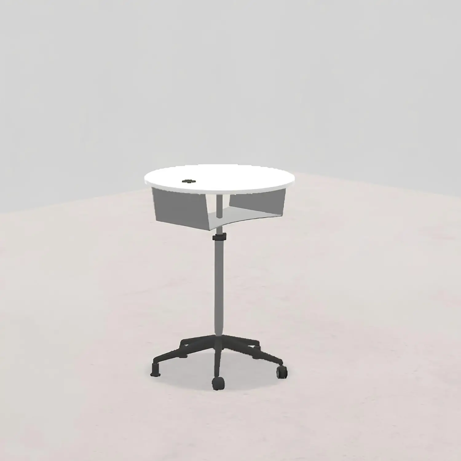 La sua struttura con ruote, il piano con passacavi e la regolazione in altezza lo rendono indispensabile per ambienti flessibili e organizzati.