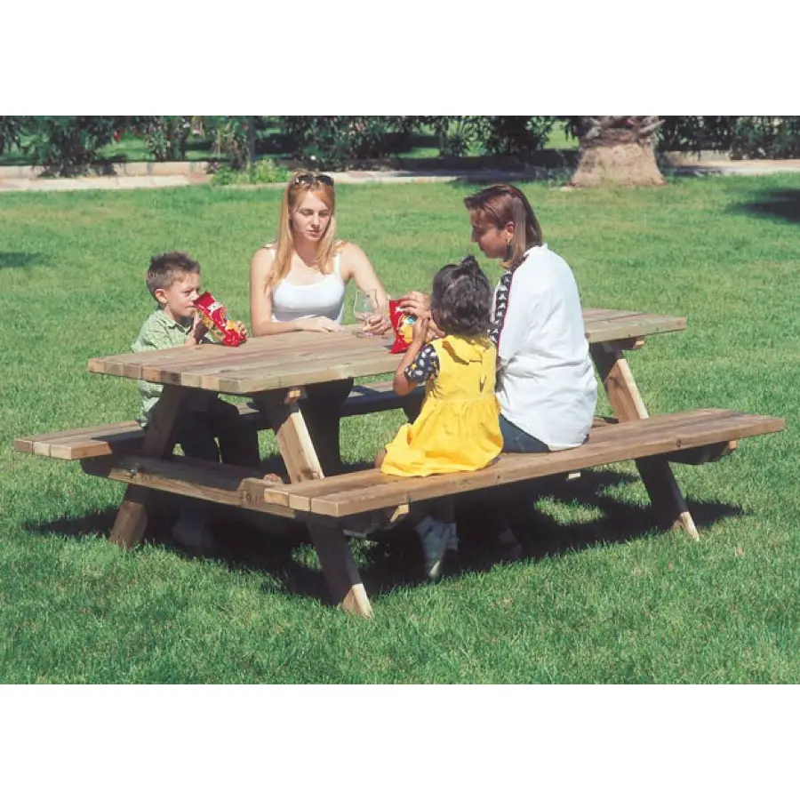 - ✅ Design pratico con due panche laterali fisse e tavolo centrale, perfetto per pasti e momenti conviviali all'aperto.