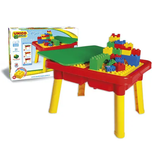 - ✅ Tavolo Multigioco Unico Plus stimola creatività e manualità con 31 mattoncini Maxi compatibili e sicuri.