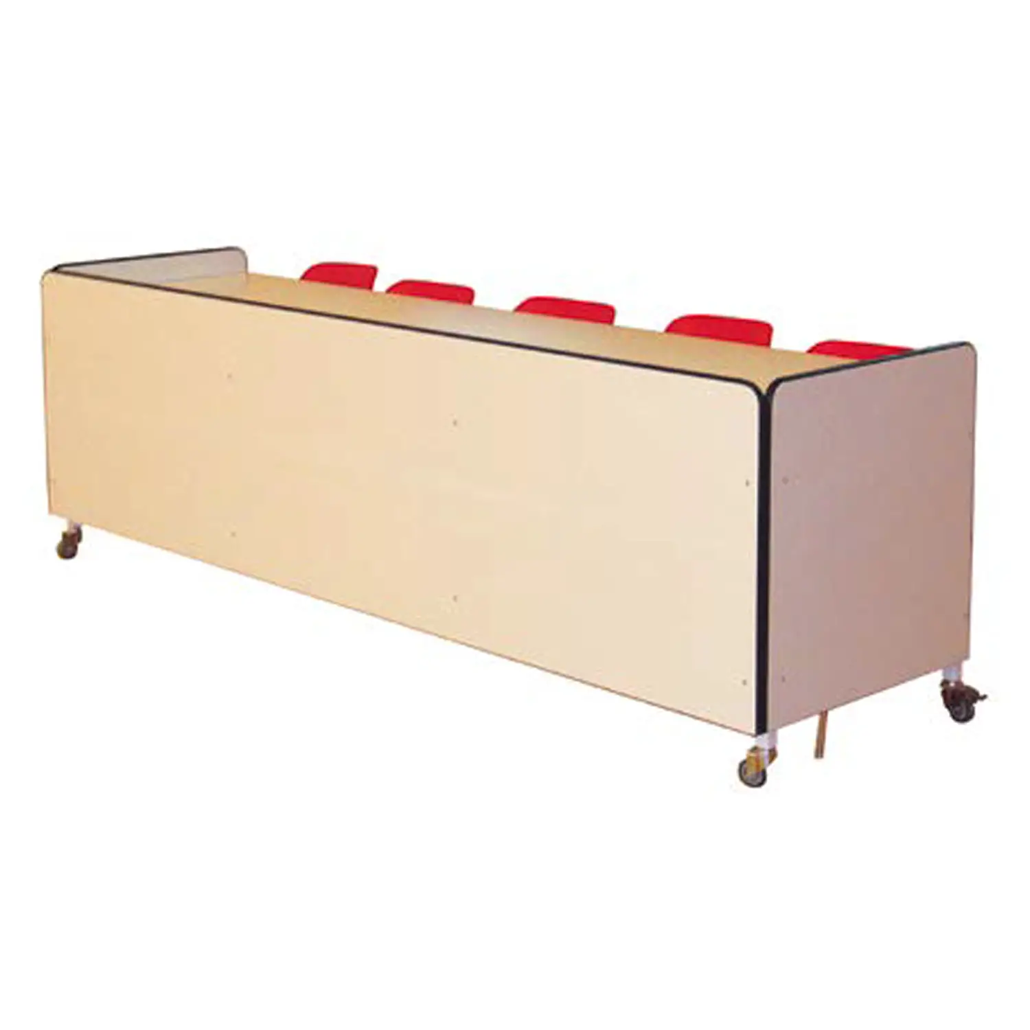 Piano di lavoro spazioso in bilaminato bianco cm.300x72 che offre ampio spazio per ospitare tutto il necessario per il lavoro degli ufficiali di gara (PC, fogli di gioco, cronometri e altro).