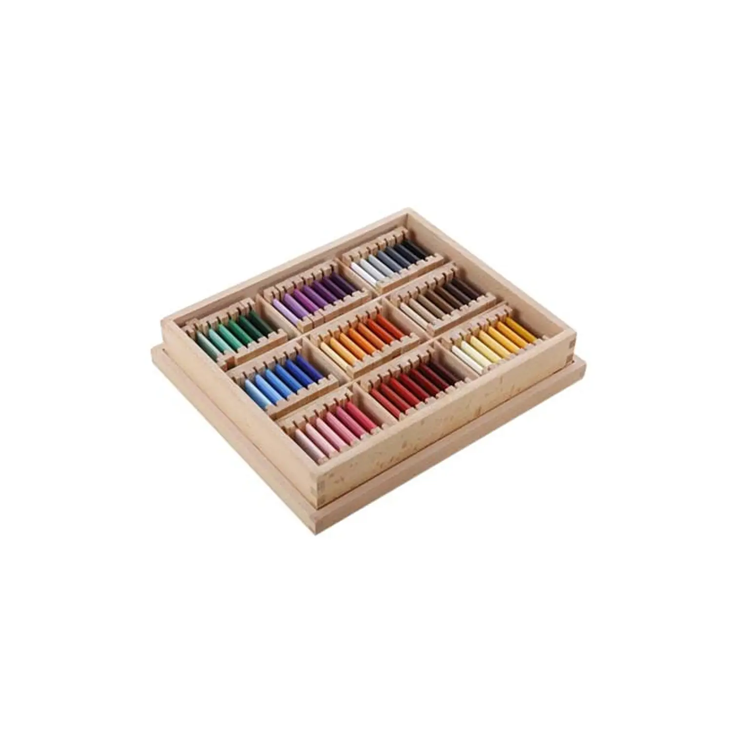 Con la Terza Scatola delle Spolette dei Colori Montessori, i bambini imparano a distinguere e gradare i colori, affinando il senso cromatico in modo educativo, pratico e divertente.