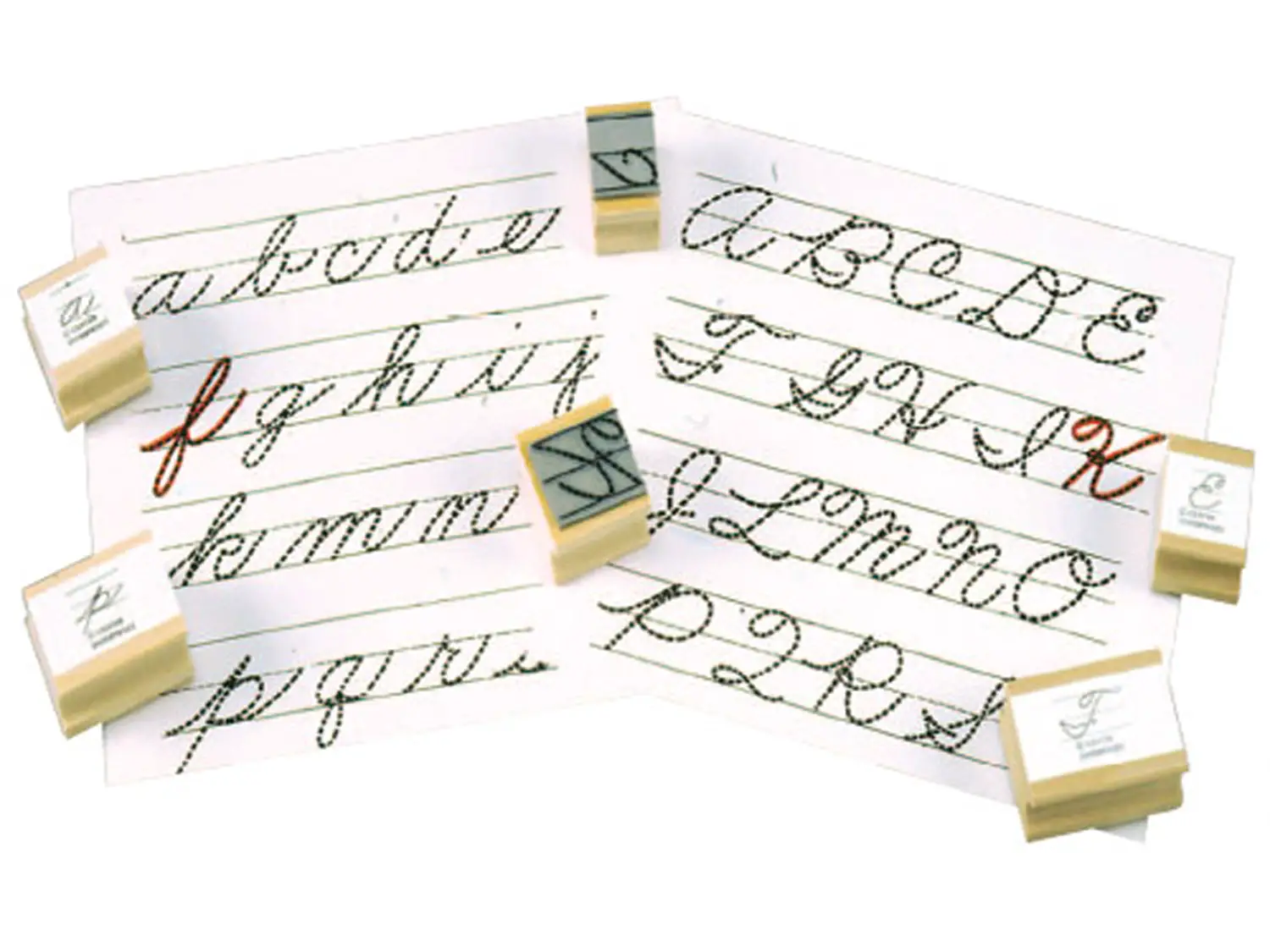 - ✅ Set educativo con 26 timbri per apprendere il corsivo maiuscolo, ideale per bambini in età prescolare.