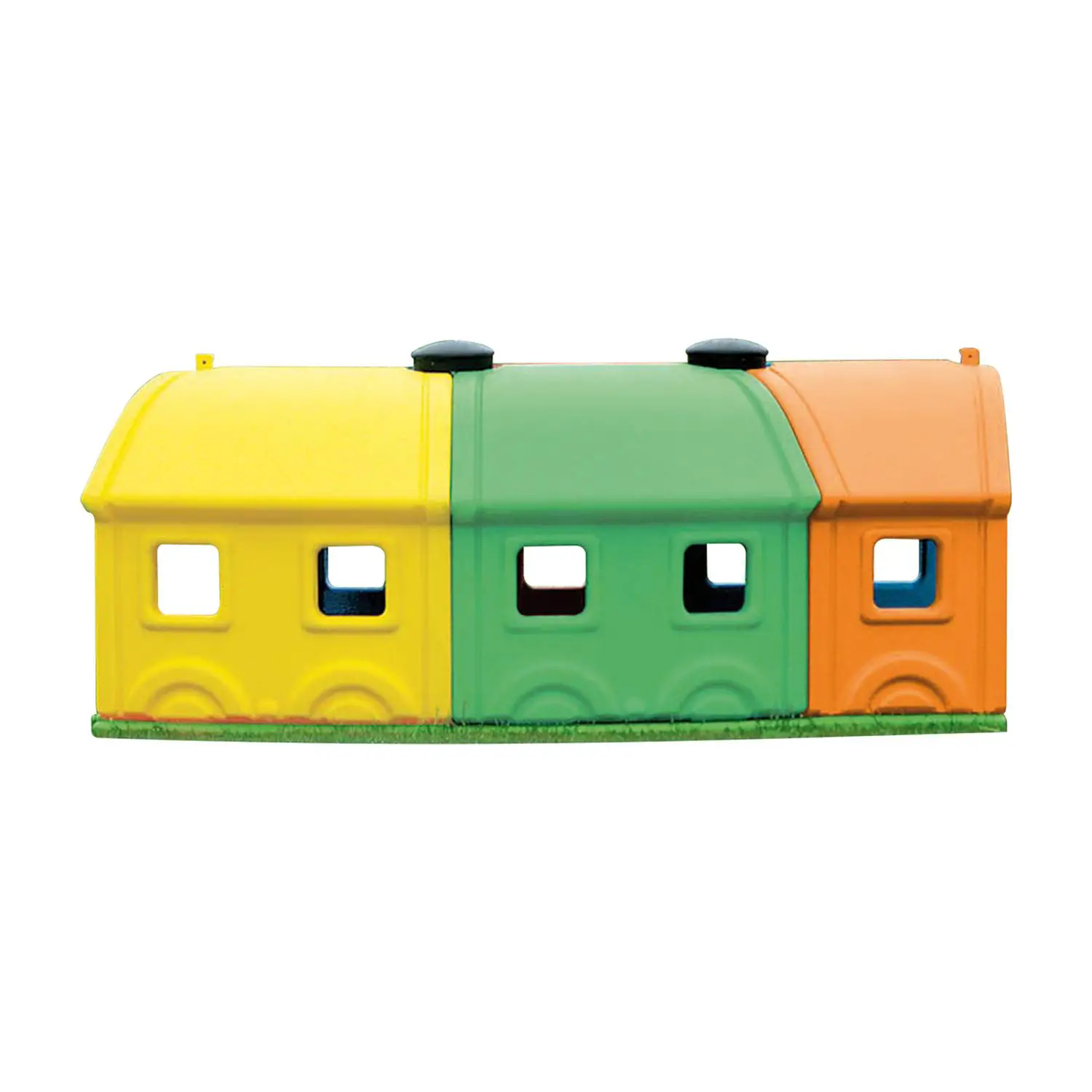 Le finestrelle laterali garantiscono aerazione e illuminazione interna, mentre la sagoma modulare permette di creare percorsi sempre diversi e divertenti.
