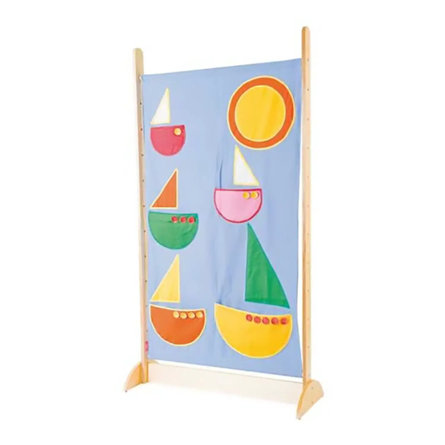 Funzionalità Didattica e Ludica: Oltre a fungere da divisorio, il telo colorato con applicazioni a tema barche invita all’esplorazione visiva e alla narrazione, arricchendo l’ambiente con un tocco di allegria e spunti per il gioco e l’apprendimento.