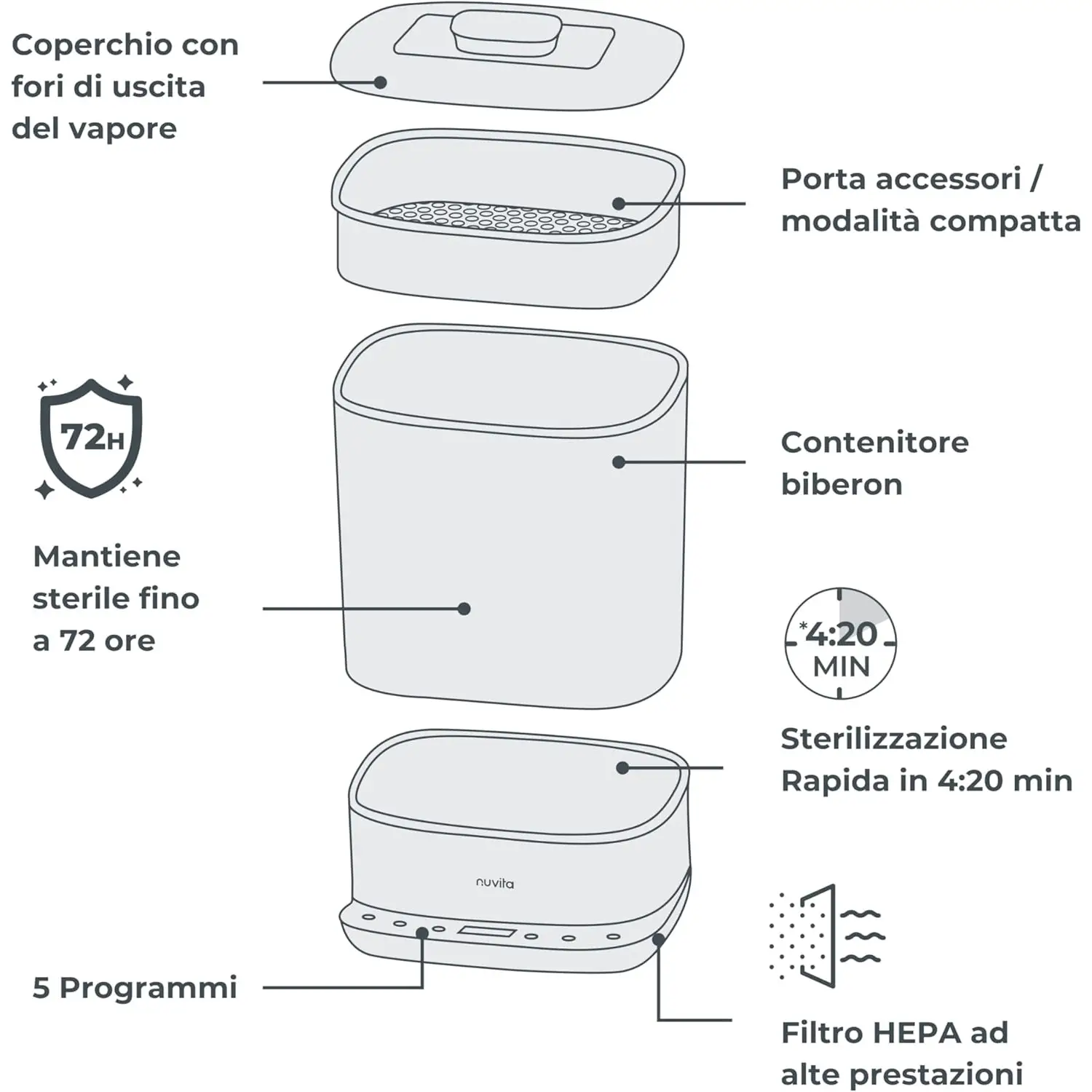 Nuvita SteriDry 1088 Sterilizzatore Biberon HEPA 72H