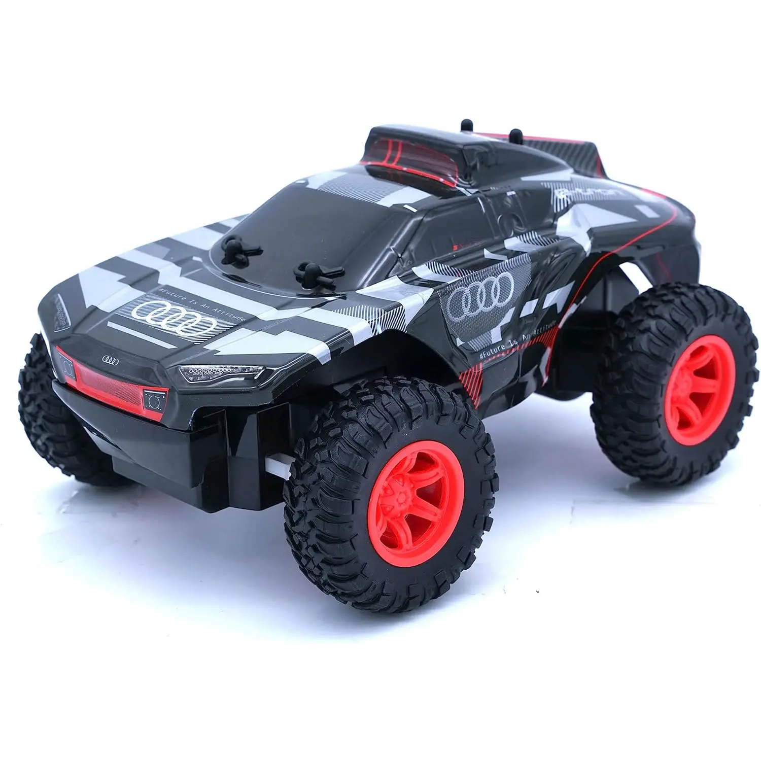 -Caratteristiche: L’Audi RS Q e-tron è un veicolo radiocomandato con una scocca in lexan (un tipo di plastica trasparente e resistente) e ruote morbide. Queste caratteristiche contribuiscono a una maggiore durata e ad un’esperienza di guida più realistica.