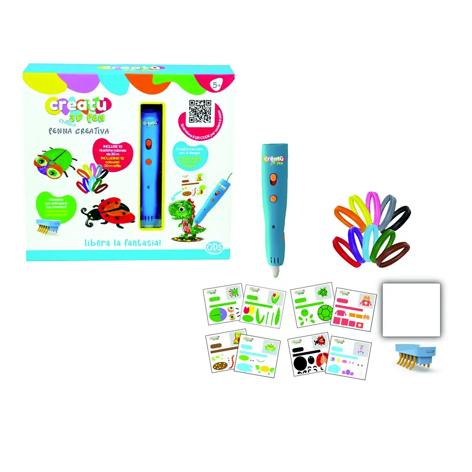 Innovazione con Creatù Scopri Creatù, la penna 3D creativa con accessori di ODS. Crea oggetti unici con facilità e precisione grazie alla tecnologia avanzata. Accessori Inclusi Creatù dispone di 10 ricariche da 30 cm e 4 fogli fronte retro con 8 disegni. Ogni accessorio è pensato per espandere la tua creatività. Animazione delle Creazioni Il motorino incluso permette di animare le tue creazioni 3D. Dai vita ai tuoi progetti con Creatù di ODS. Esperienza Creativa Unica Creatù di ODS offre un’esperienza creativa senza precedenti. Realizza oggetti 3D personalizzati con semplicità e divertimento.