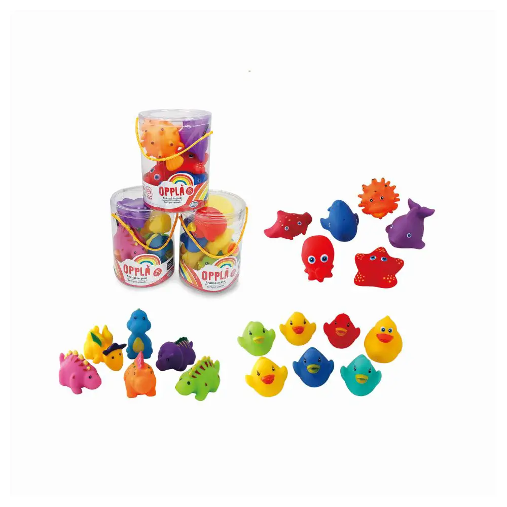 Rendi il momento del bagnetto un’esperienza divertente e interattiva con gli Opplà Secchiello Animaletti in PVC. Morbidi, sicuri e colorati, questi adorabili animaletti stimolano la curiosità e l’immaginazione del tuo bambino durante il gioco in acqua.