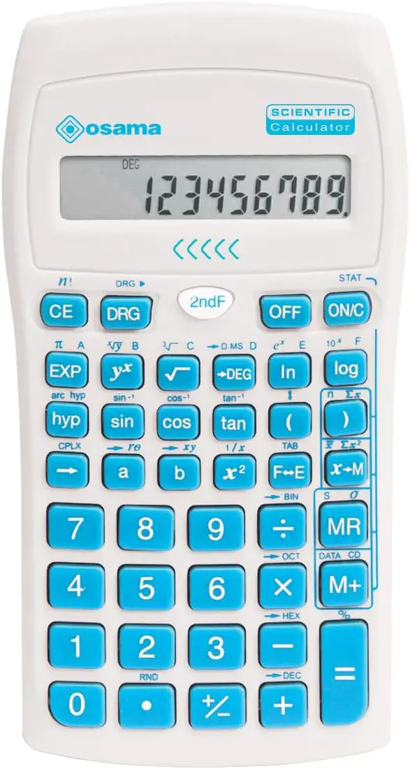 La Calcolatrice Scientifica 56 Funzioni Osama è uno strumento completo e affidabile, perfetto per studenti, professionisti e appassionati di matematica. Inserita nell’elenco del MIUR tra le calcolatrici elettroniche ammesse per la seconda prova scritta all’Esame di Stato, offre precisione e facilità d’uso per una vasta gamma di calcoli.