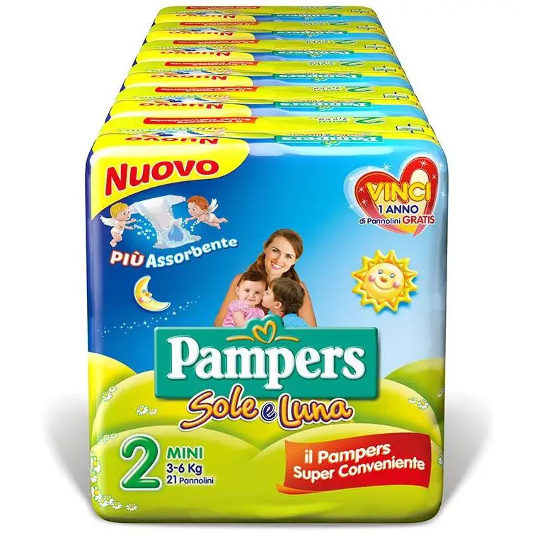 Scegli Pampers Sole&Luna Taglia 2 Mini per una protezione sicura e un comfort impeccabile nei momenti più delicati del tuo bambino.