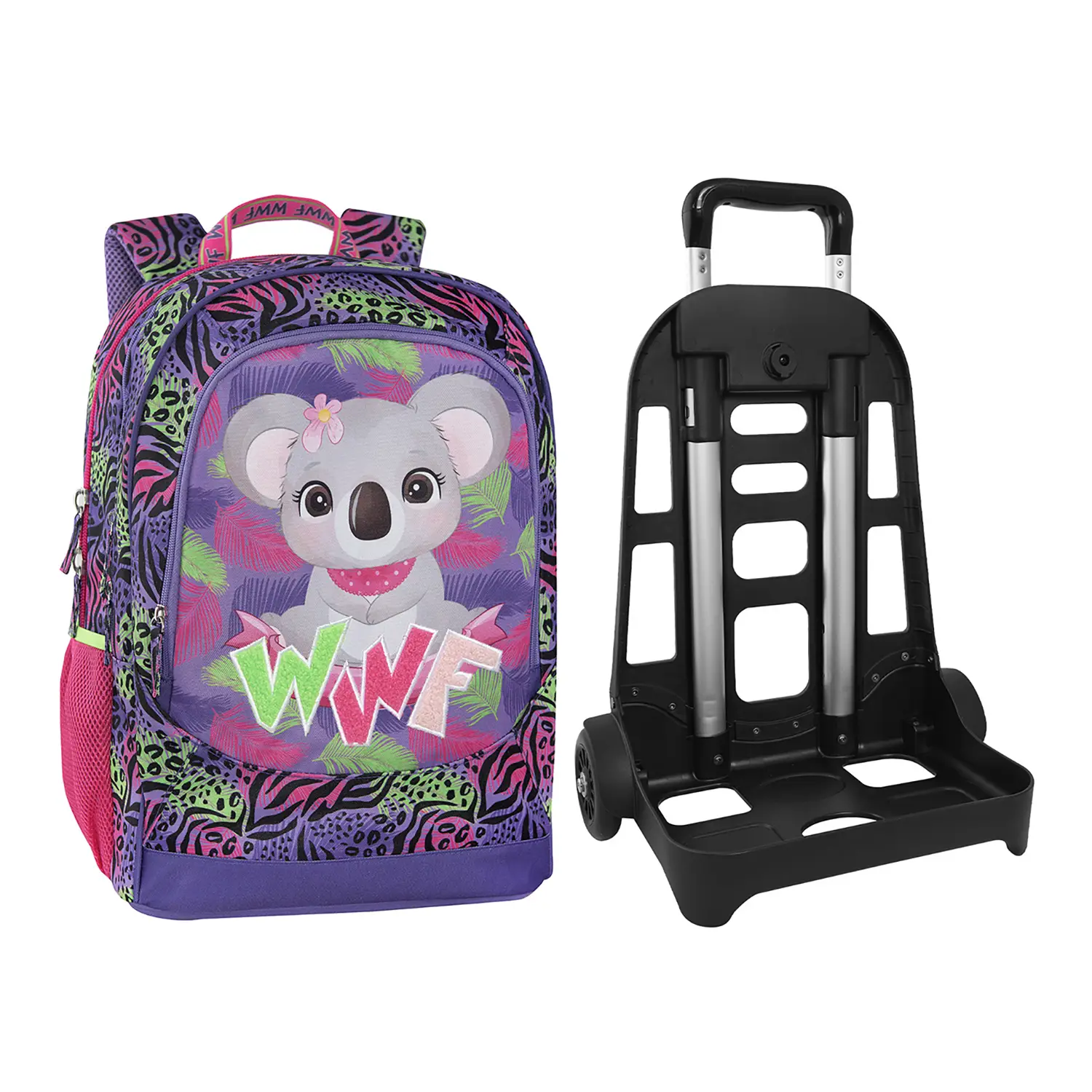 WWF Koala detachable trolley backpack: practicality and style for school Panini's WWF Koala trolley backpack is designed for school and leisure, with an attractive design and durable materials. It combines functionality, convenience and a cuddly koala-inspired style.