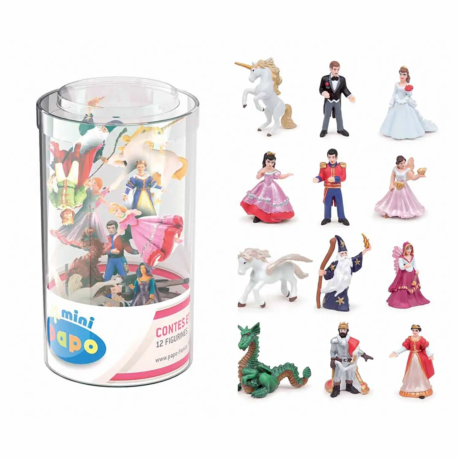 Un mondo incantato a portata di mano Il set PAPO Mini PLUS Personaggi delle Fiabe include 12 mini figurine ispirate a principesse, cavalieri, fate, unicorni e creature leggendarie. Perfetto per accompagnare i bambini in avventure fantasiose e racconti magici.