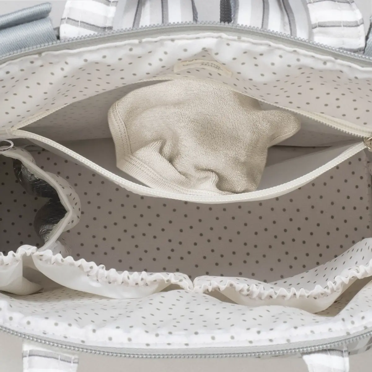 Massima organizzazione, zero stress Grazie alle numerose tasche interne ed esterne, tutto ha il suo posto: biberon, salviette, posate e accessori rimangono sempre a portata di mano e perfettamente ordinati.