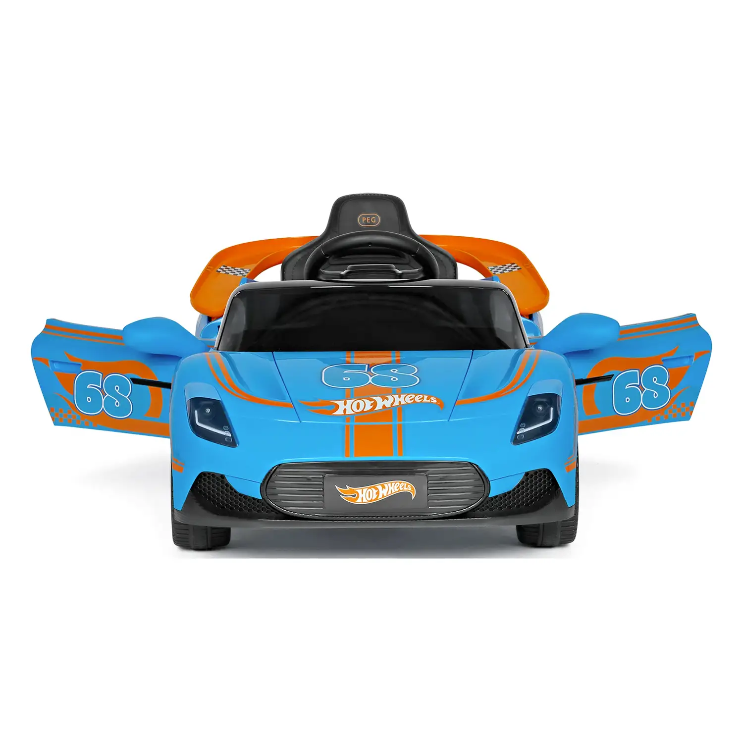 Auto Elettrica di Hot Wheels 12V con Sedile in Similpelle, Luci LED, Portiere Apribili