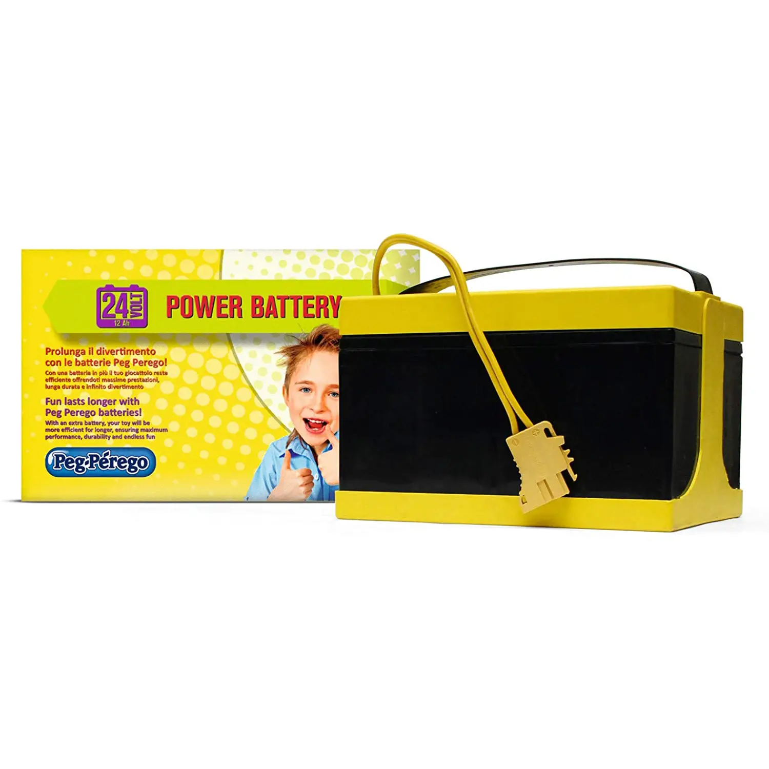 Aumenta le ore di divertimento dei tuoi veicoli elettrici Peg Perego con la batteria ricaricabile 24V 12Ah. Ideale sia come ricambio sia come batteria di scorta, consente ai bambini di giocare senza interruzioni, anche durante le sessioni più lunghe e avventurose.