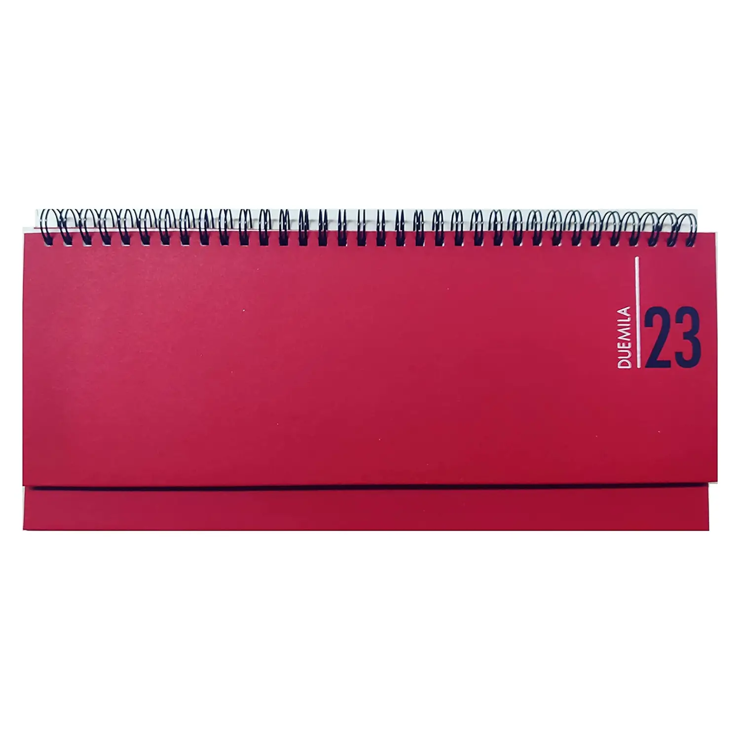 Planning with metal spiral, assorted colored plex cover, week in landscape with side notes.