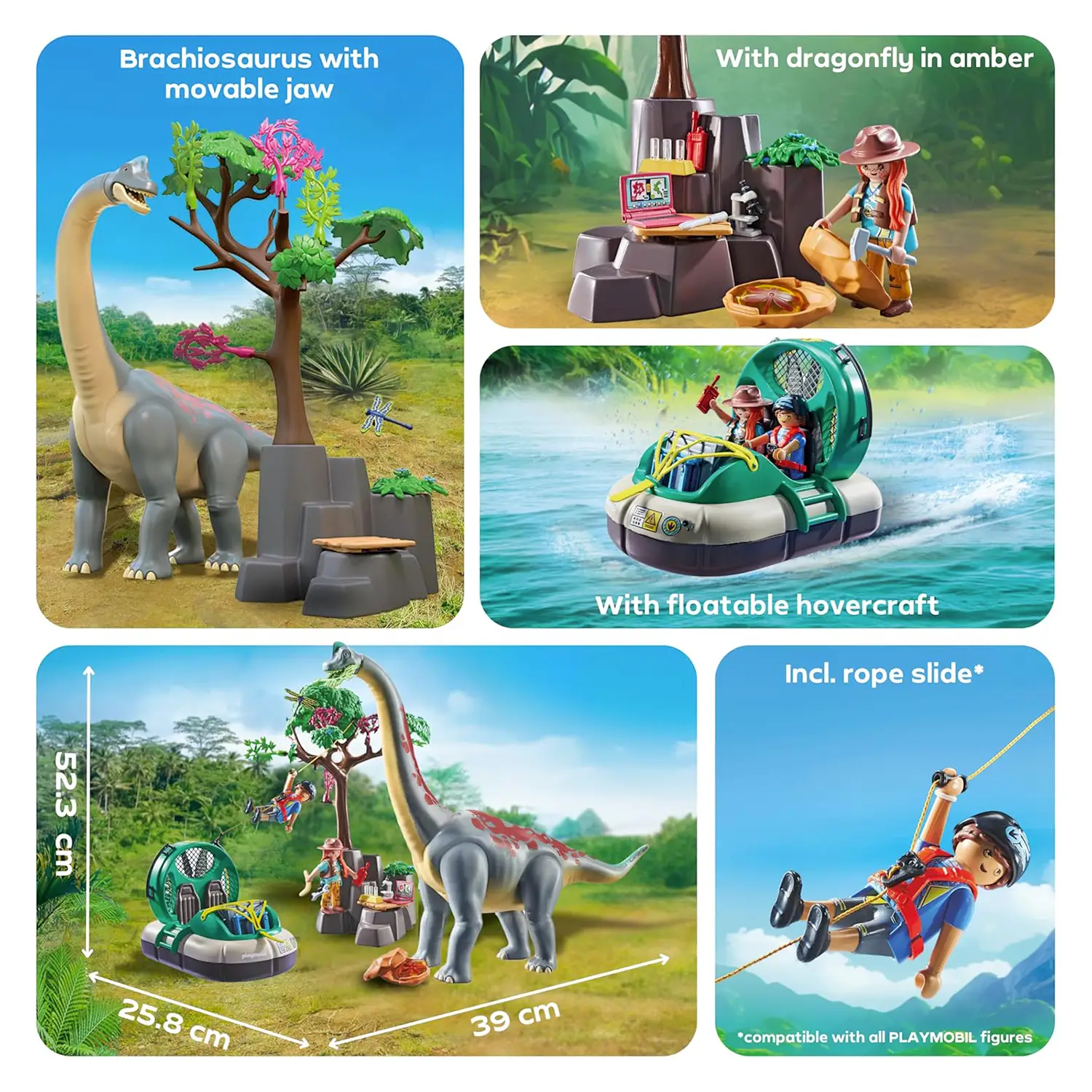 - ✅ Set Playmobil Dinos con Brachiosauro, hovercraft e accessori per esplorazioni dinamiche.