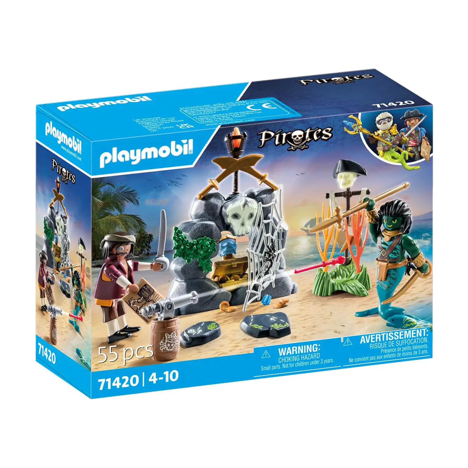 Esplora il mistero con il Playmobil Pirates Nascondiglio Del Tesoro Pirata 71420! Imbarcati in un’avventura senza precedenti per scoprire il leggendario teschio di cristallo. Con l’aiuto di una mappa del tesoro, l’intrepido pirata deve navigare attraverso i pericoli dell’isola misteriosa, eludere il suo astuto guardiano e reclamare il tesoro che giustamente gli appartiene.