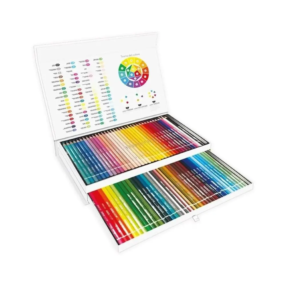 Una Combinazione di Nuances Delicate e Colori Standard All’interno dell’elegante scatola con chiusura magnetica, troverai una selezione meticolosamente curata di 36 matite colorate in nuances pastello delicate nel cassetto superiore, mentre il cassetto inferiore contiene 36 colori standard. Questa varietà assicura che tu abbia sempre il colore perfetto a portata di mano per qualsiasi progetto artistico.