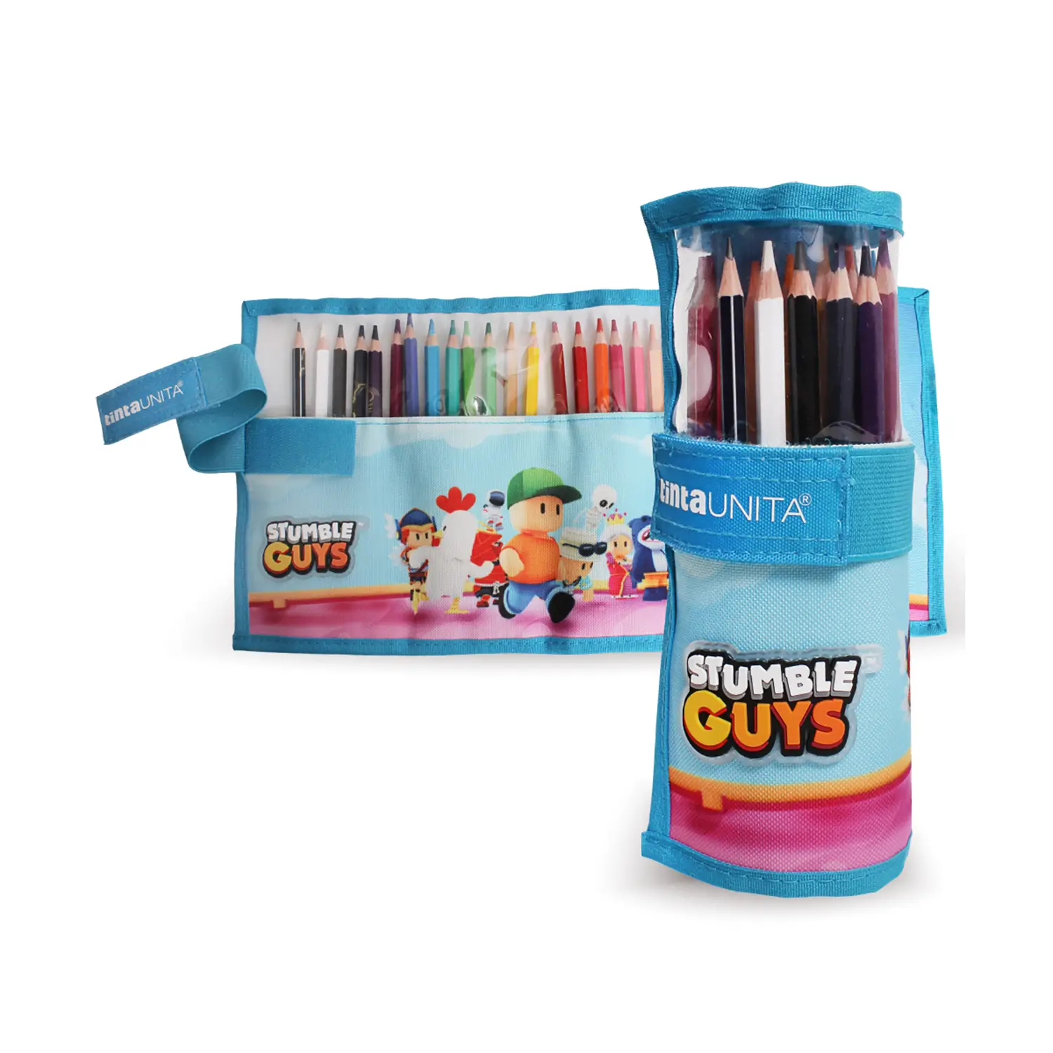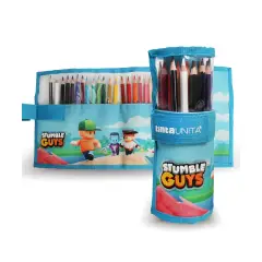 The Solid Color Stumble Guys Roll is made of durable polyester with a PVC window, providing clear visibility of the contents. The colorful and eye-catching design with the Stumble Guys theme makes it ideal for young artists.