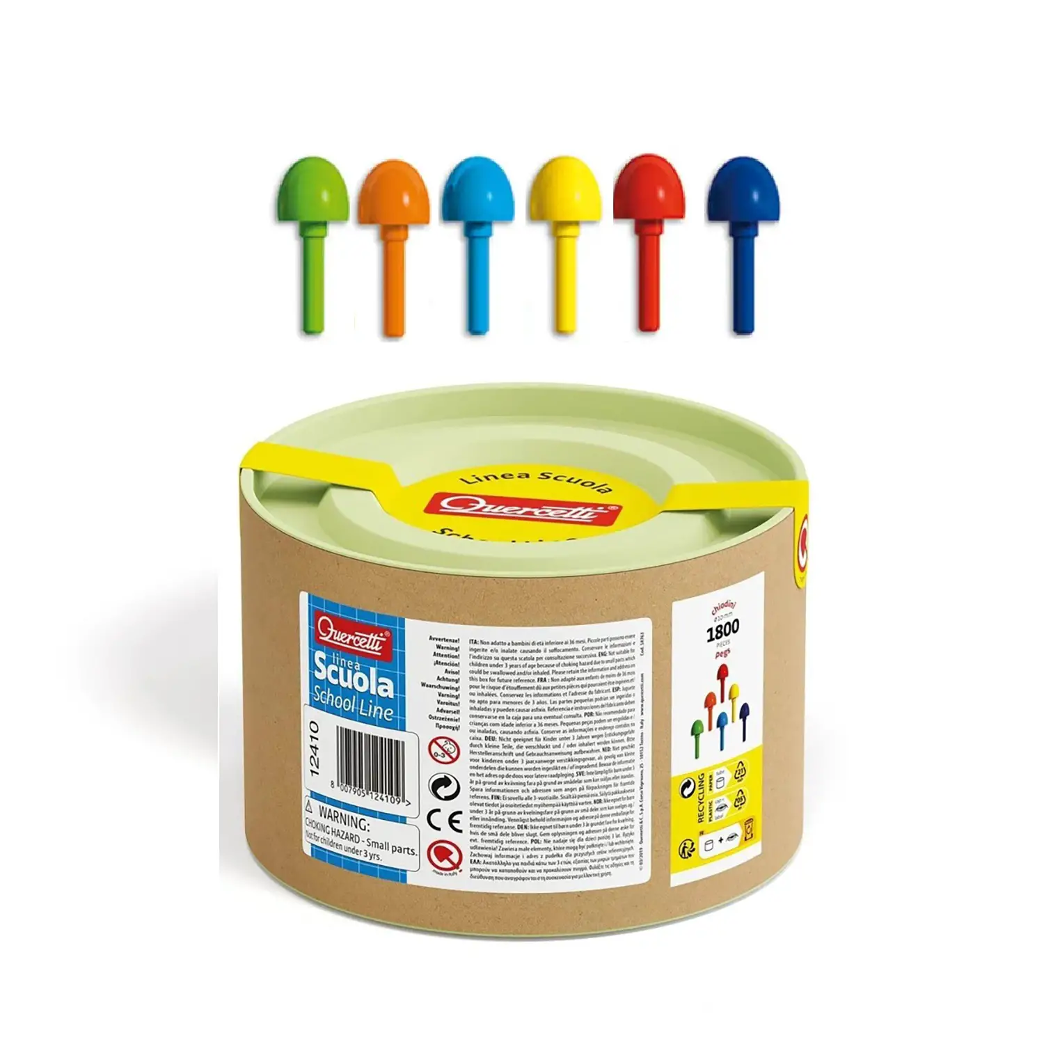 Contenuto del Kit: Il kit include un barattolo da 750 grammi di chiodini assortiti, che corrisponde a circa 1800 pezzi. Questa quantità di chiodini offre molte possibilità creative per i bambini, consentendo loro di creare una varietà di disegni e composizioni.