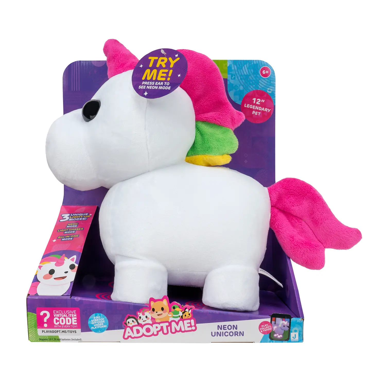 Illumina la notte con il Peluche Neon Unicorno di Adopt Me! Ora puoi aggiungere il leggendario Neon Unicorno alla tua collezione Adopt Me. Questo peluche morbido da 30 centimetri presenta tre diverse modalità luminose che portano la magia dell’Unicorno Neon del gioco nella realtà!