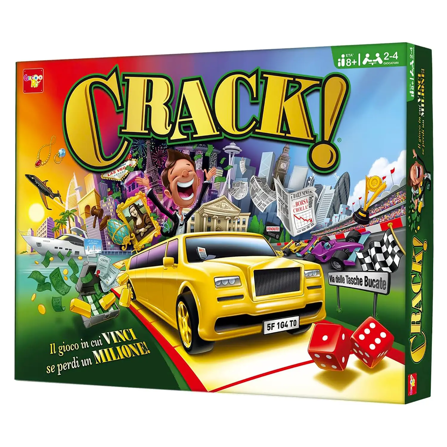 Entra nel mondo delle spese folli e degli investimenti pazzi con CRACK!, il gioco da tavolo di Rocco Giocattoli che mette alla prova astuzia, strategia e senso dell’umorismo.