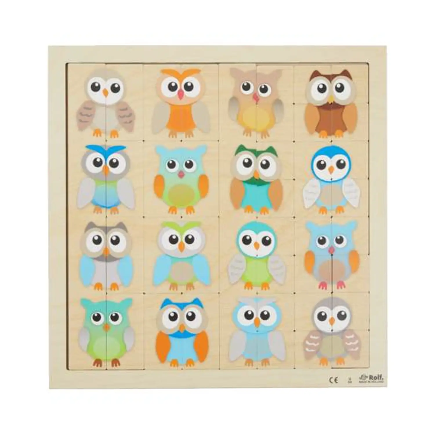 - ✅ Colorati gufetti in legno da ricomporre abbinando correttamente le parti.