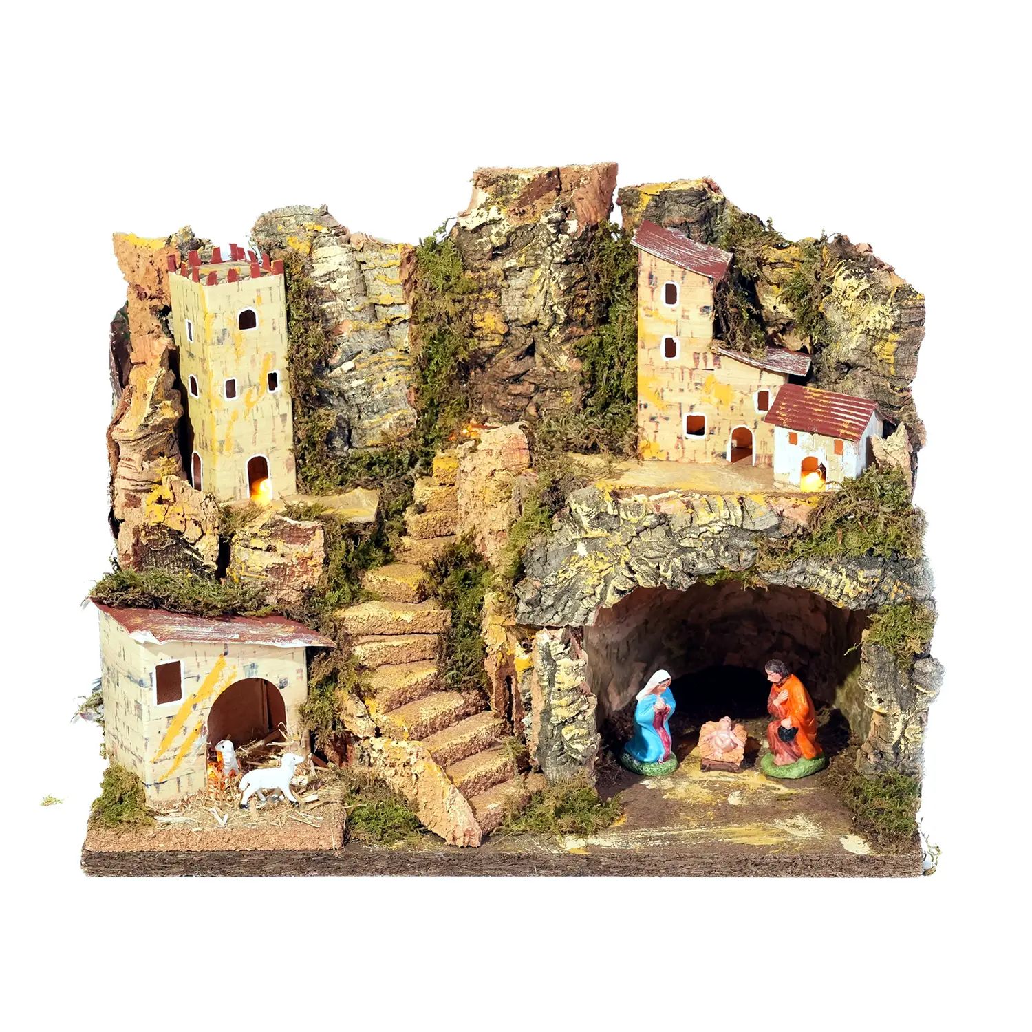 - Figure in Scala: Include figure di 6 cm della Sacra Famiglia, disposte con attenzione per creare un effetto scenografico realistico.