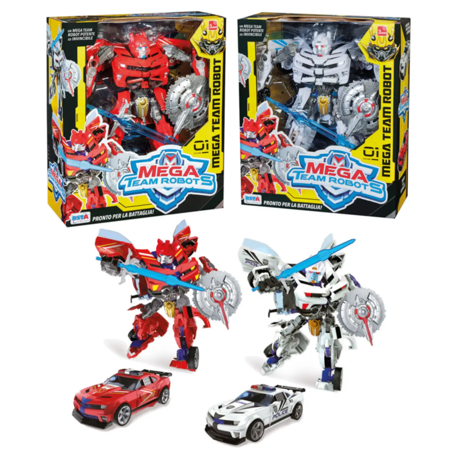 Disponibile in due modelli diversi, il Mega Team Robot Grande permette di scegliere il preferito o collezionarli entrambi per un’esperienza completa.