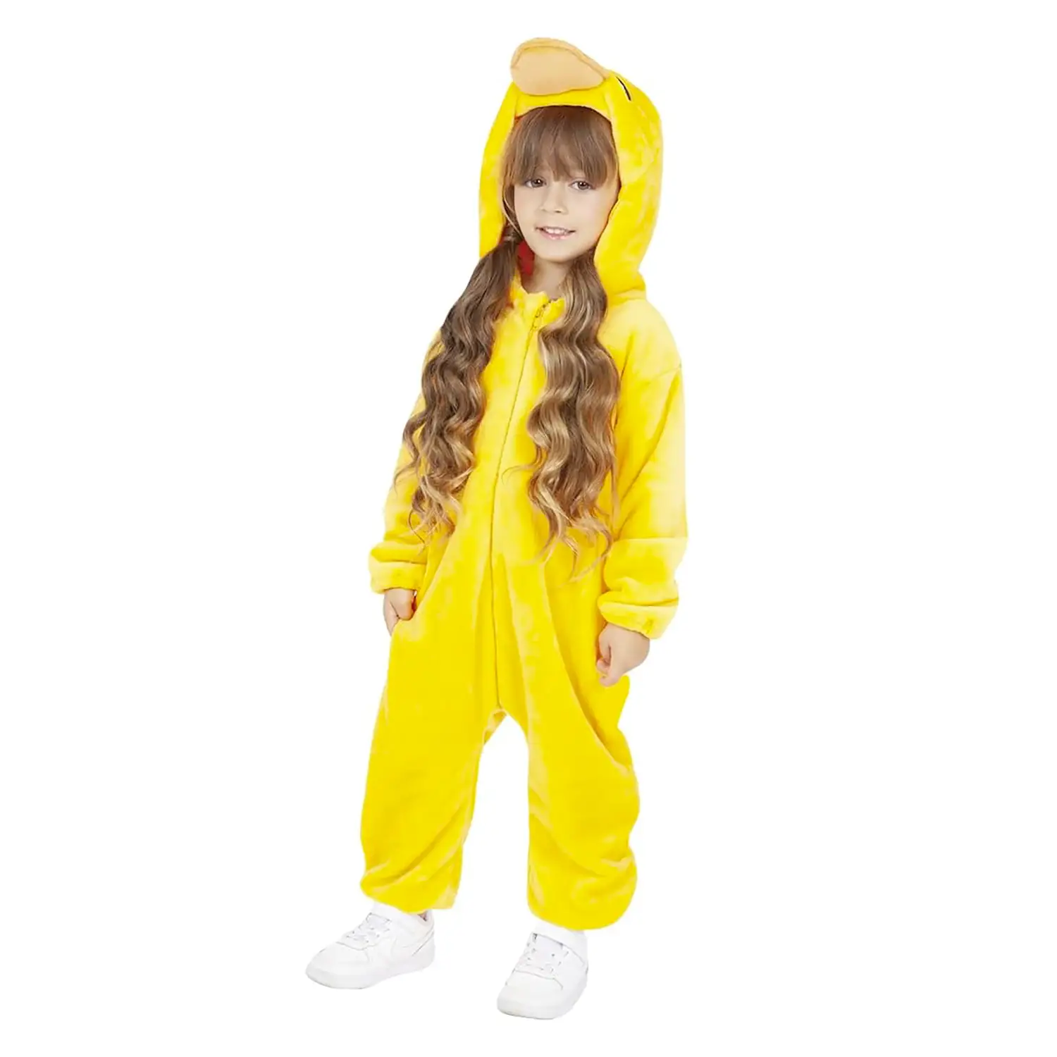 Design adorabile e pratico Il costume include una tuta intera con cappuccio e coda, realizzata in morbido poliestere di alta qualità. La cerniera frontale rende facile indossarlo e toglierlo, ideale anche per i più piccoli.