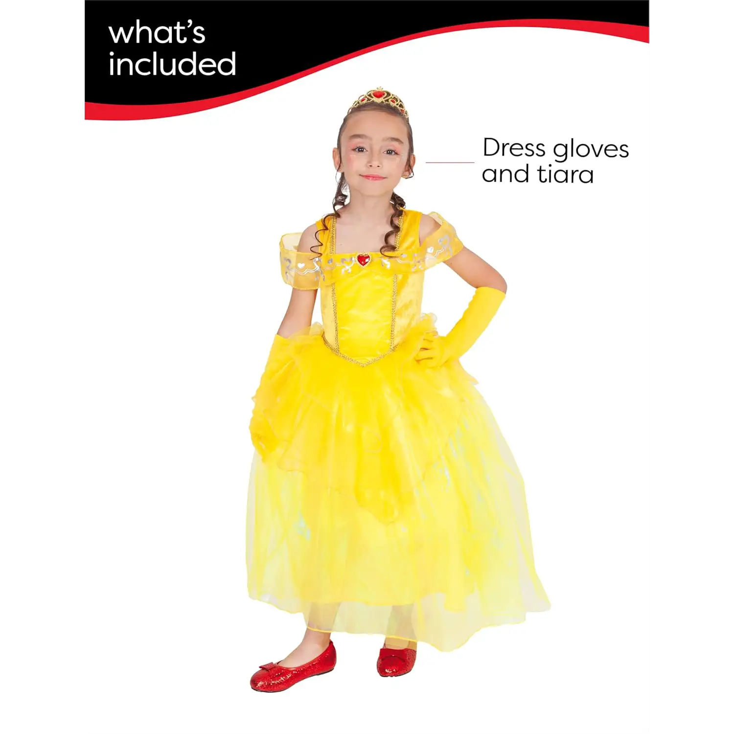 - ✅ Abito elegante color giallo con dettagli scintillanti per un autentico look da principessa.