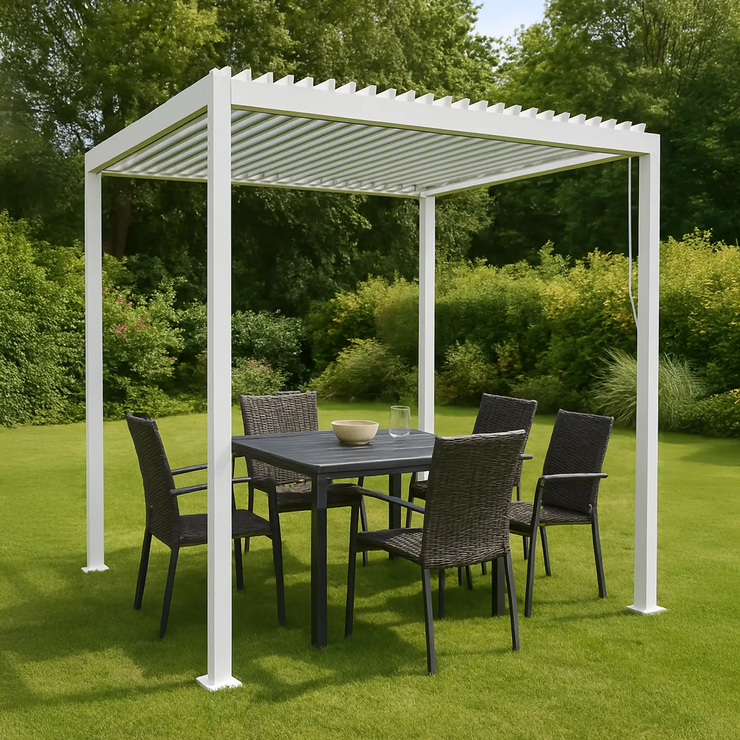 Why choose the Palmas 3x3 White Bioclimatic Pergola? Effective protection from sun and rain, thanks to the adjustable slats. Stable and durable structure designed to withstand the elements. Modern and refined design, ideal for gardens, terraces and fine outdoor spaces. Minimal maintenance, thanks to durable, high-quality materials.