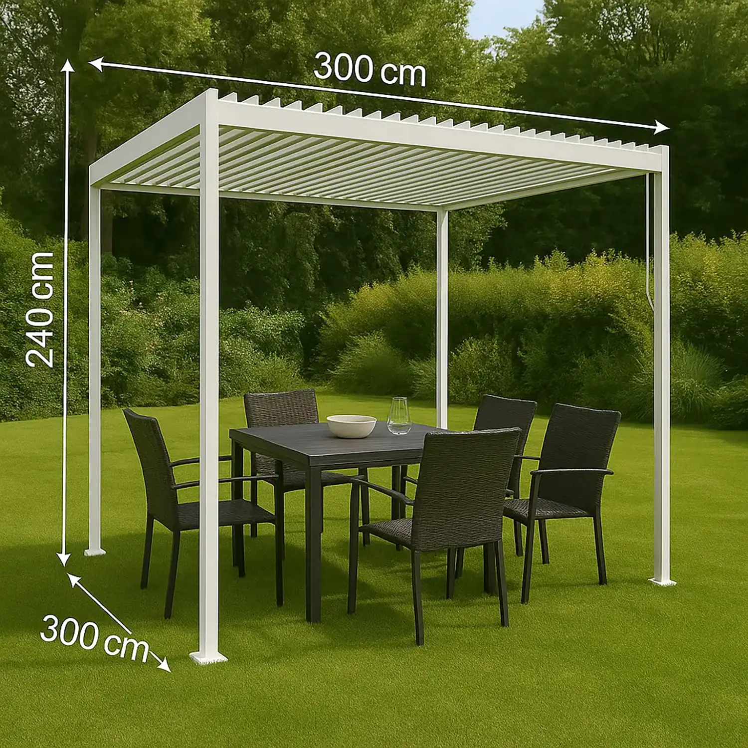 - ✅ Size 300x300x240 cm, ideal for gardens, terraces and fine outdoor spaces with a modern design.