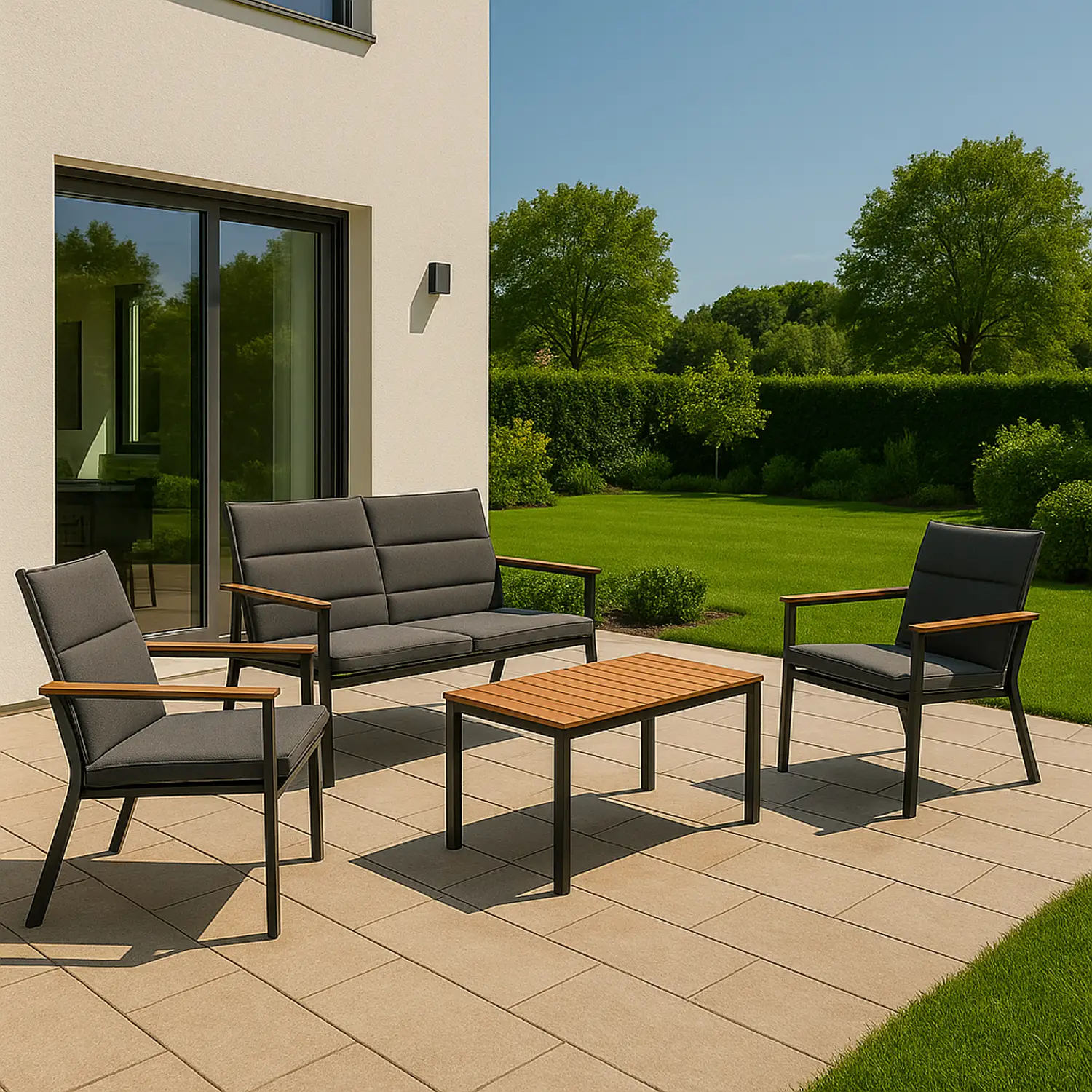 Why choose the Oregon 4 Seater Anthracite Living Room? Modern and stylish design, perfect for any outdoor environment. Strong and durable materials, ideal for extended outdoor use. Superior comfort, thanks to the padded seat and quilted textilene. Easy to clean and maintain, thanks to high-quality materials.